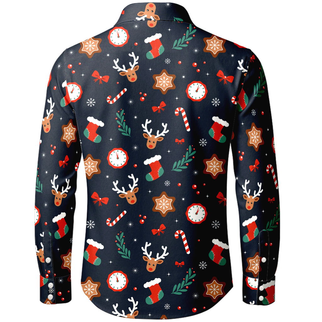 Festive Reindeer & Candy Canes Long-Sleeve Christmas Shirt