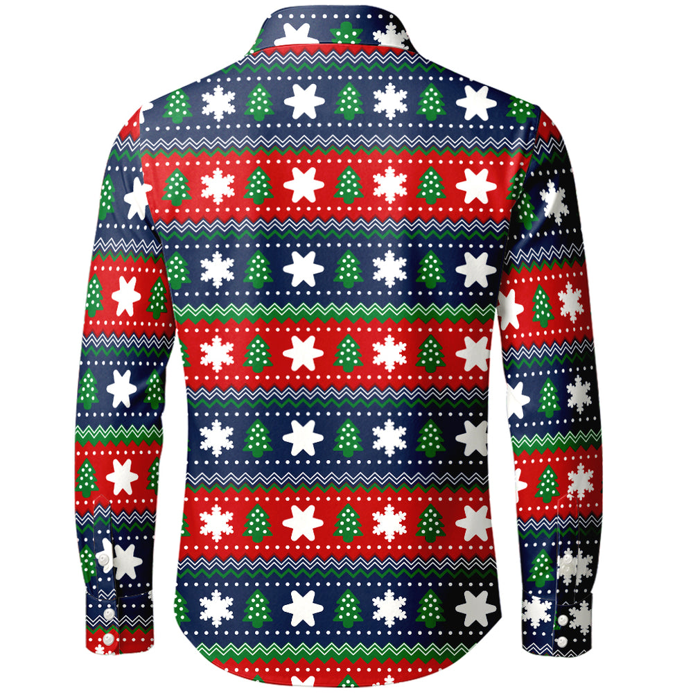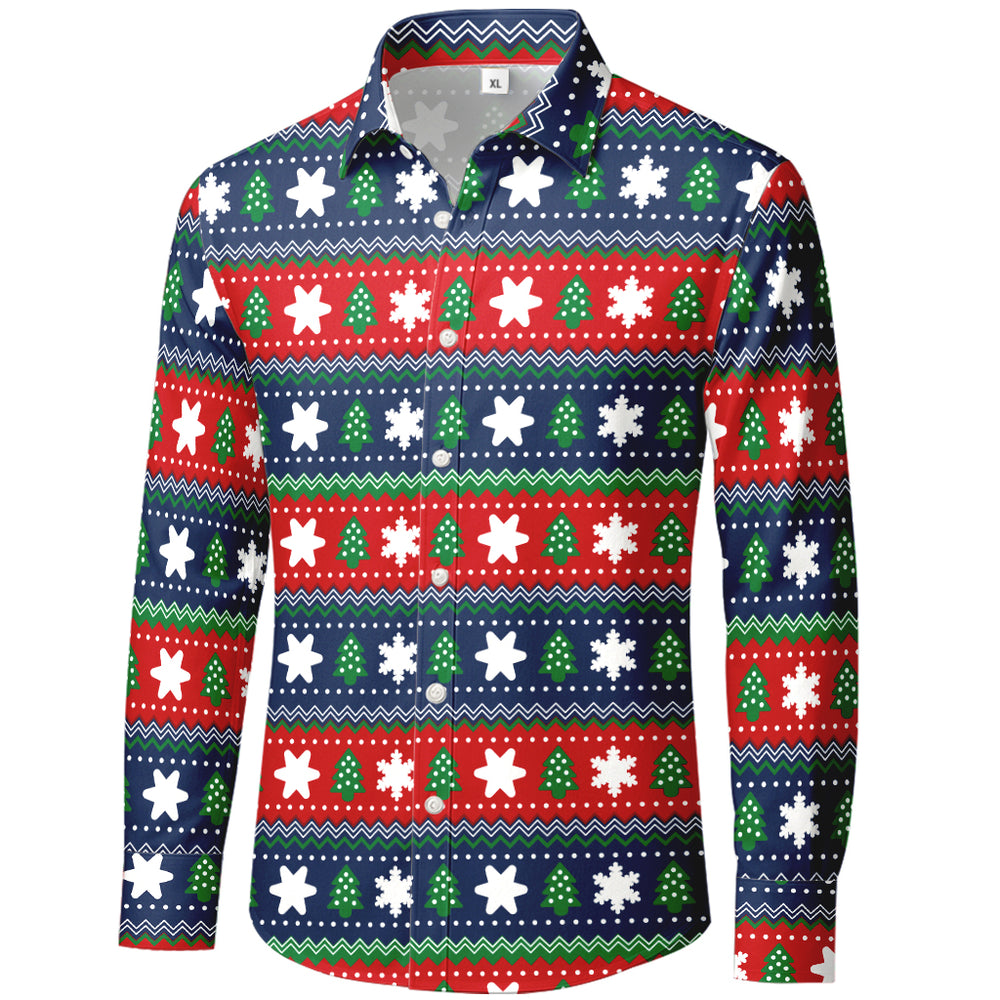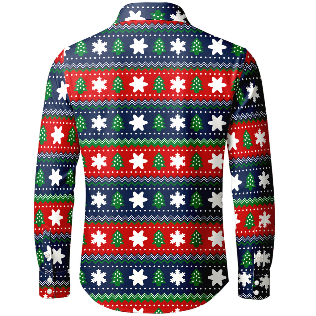 Festive Snowflake & Tree Stripe Long-Sleeve Shirt