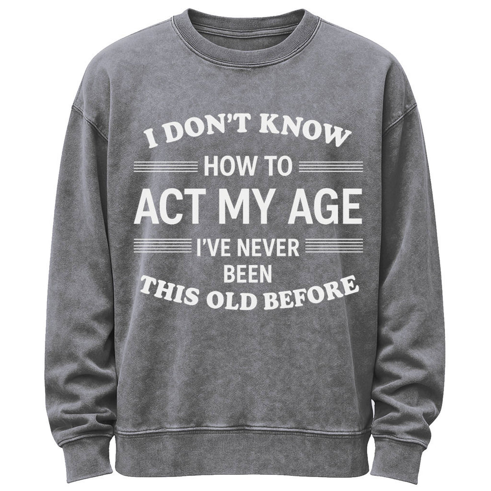 Regular price $34.99 USDLouMark’s “I Don’t Know How To Act My Age” sweatshirt captures that perfectly sarcastic wisdom of growing older — because no one ever gave us a manual. Crafted from a heavyweight 350G fabric (80% cotton, 20% polyester), it’s soft, durable, and washed for a lived-in, vintage feel. Designed for those who age with humor and style.