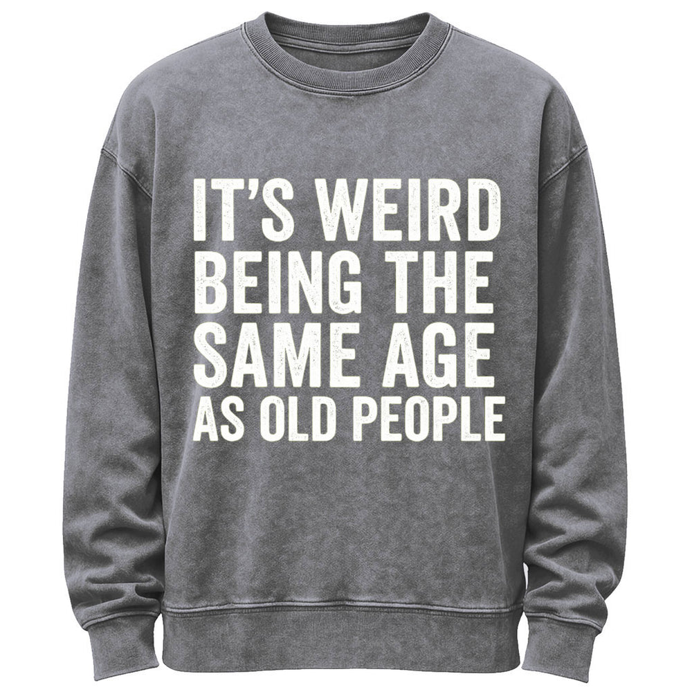 Regular price $34.99 USDLouMark’s “It’s Weird Being The Same Age As Old People” sweatshirt brings humor and self-awareness together in the most comfortable way possible. Designed for those who embrace time with a grin, this 350G heavyweight sweatshirt (80% cotton, 20% polyester) offers both warmth and wit. The washed vintage finish gives it that lived-in authenticity LouMark is known for.