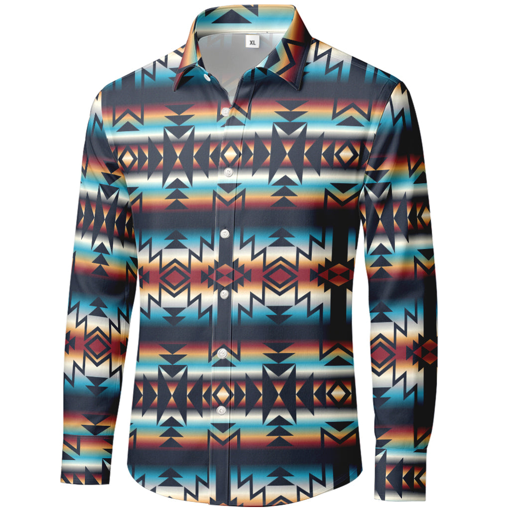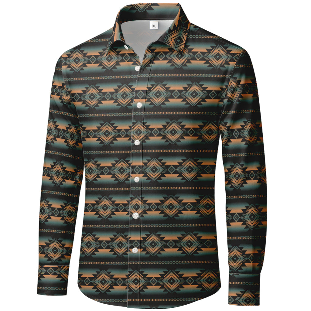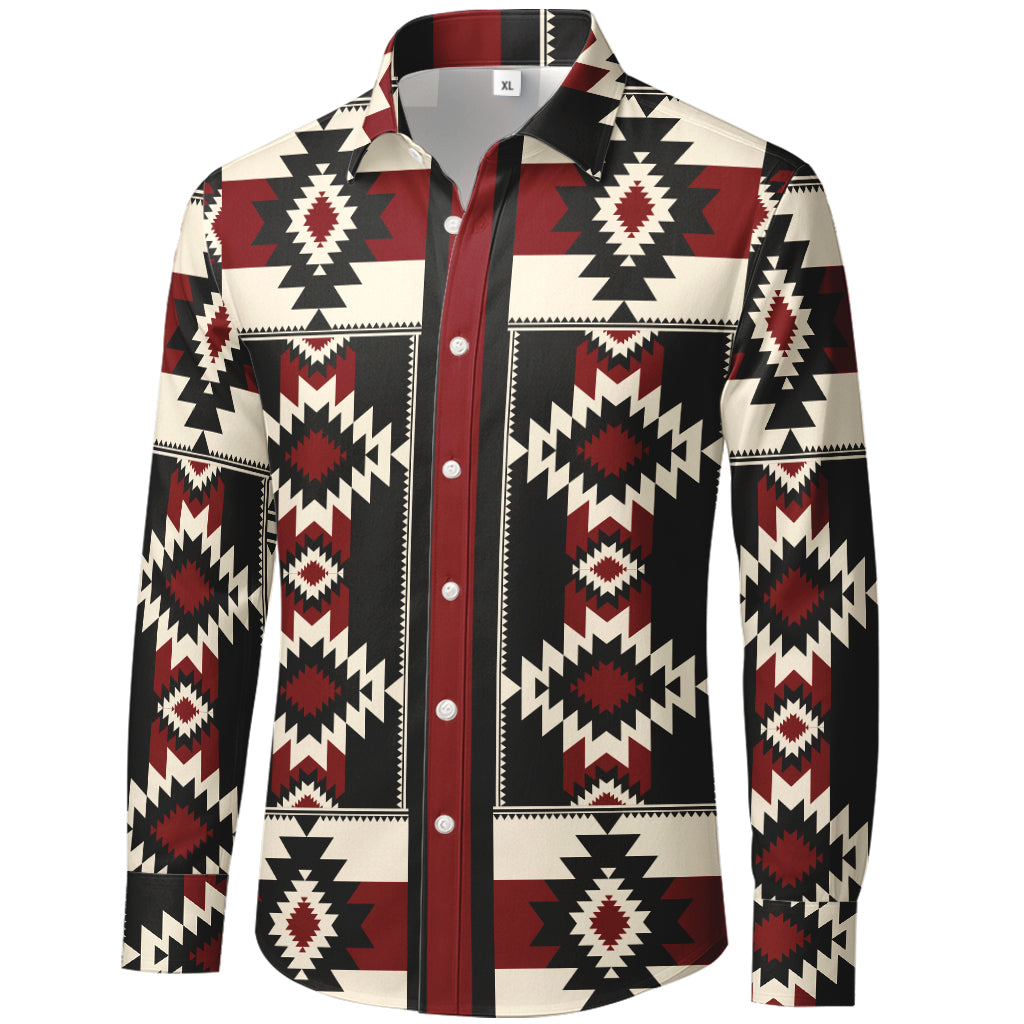 Southwestern Geometric Allover Print Long-Sleeve Shirt