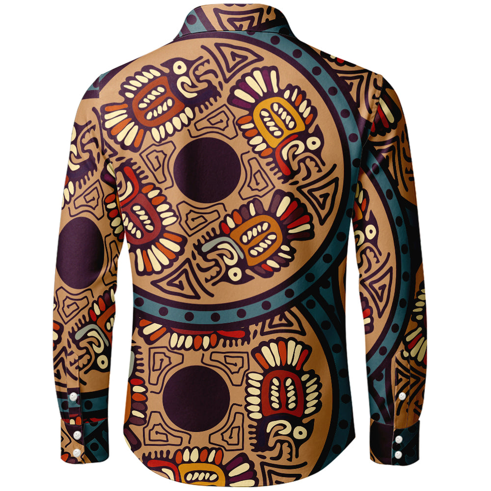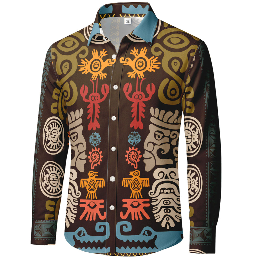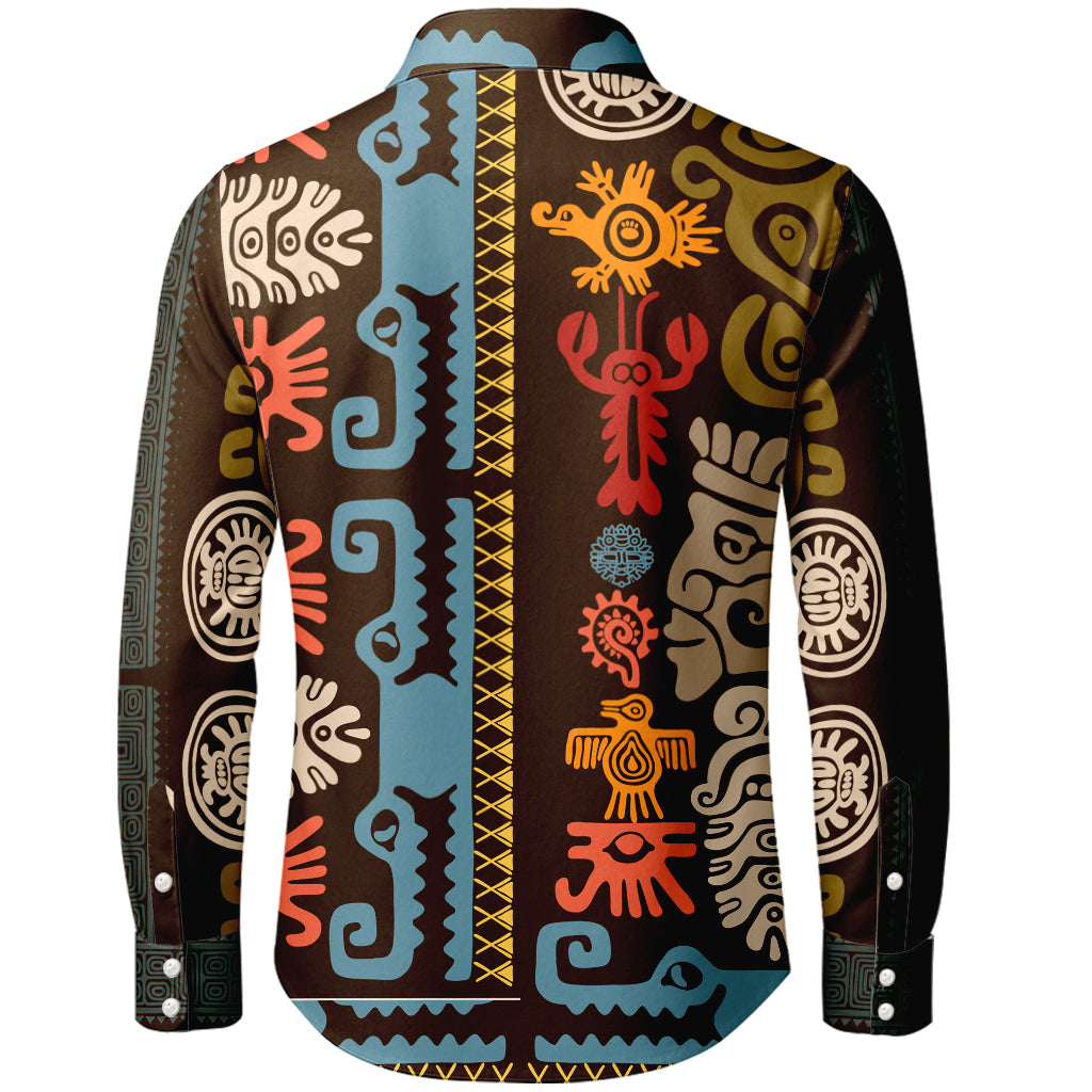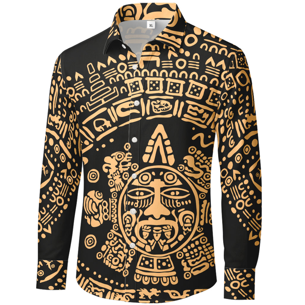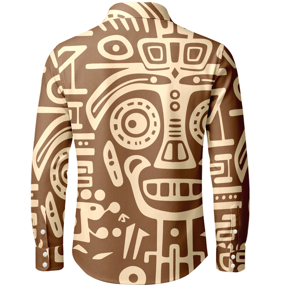 Aztec Totem Glyphs Long-Sleeve Button-Up