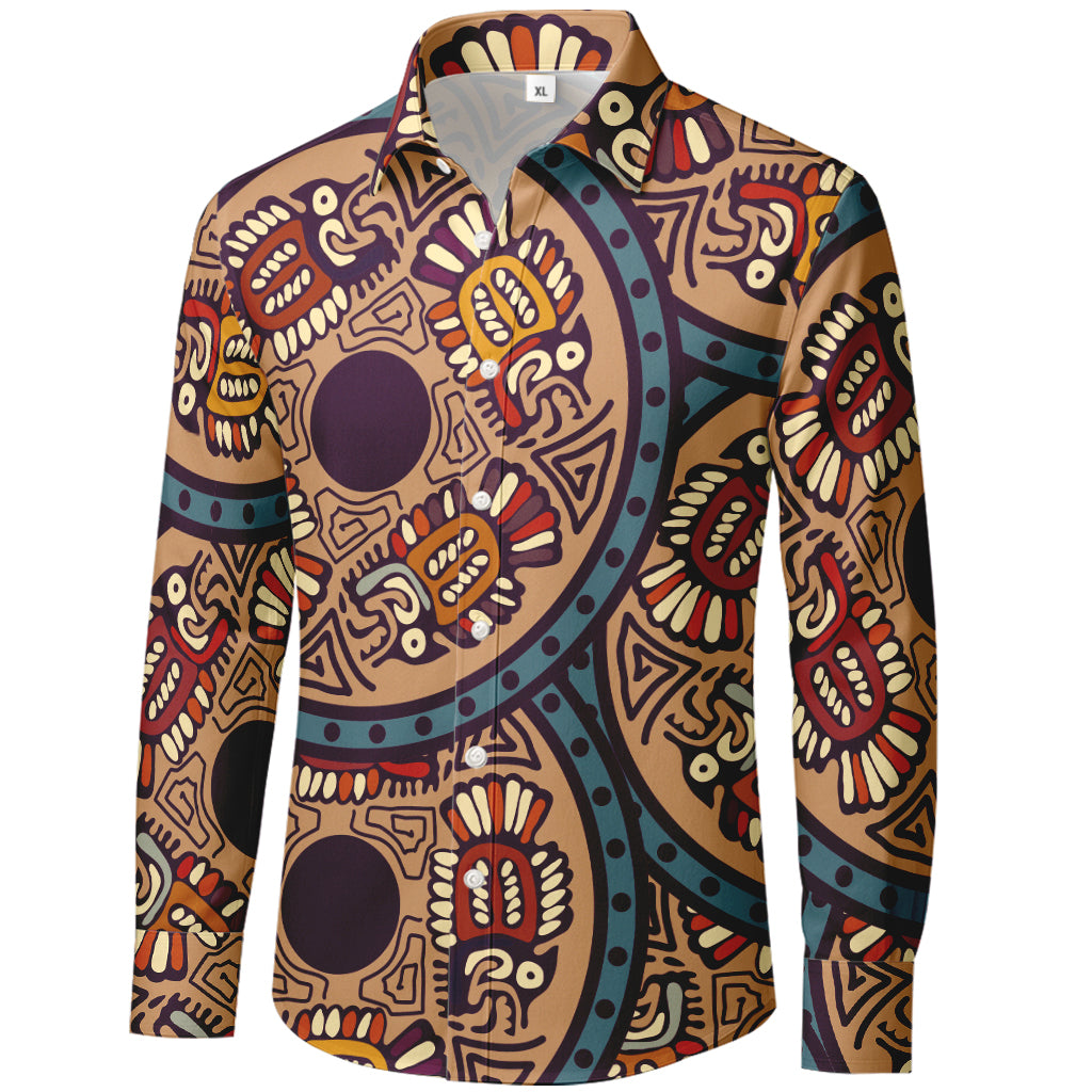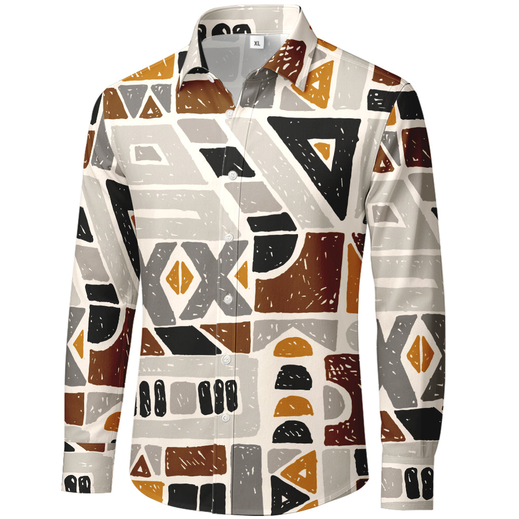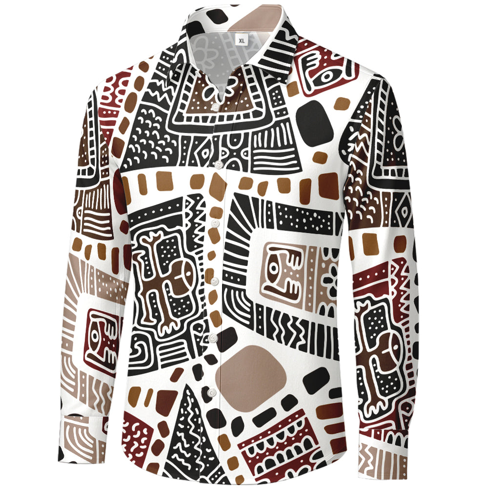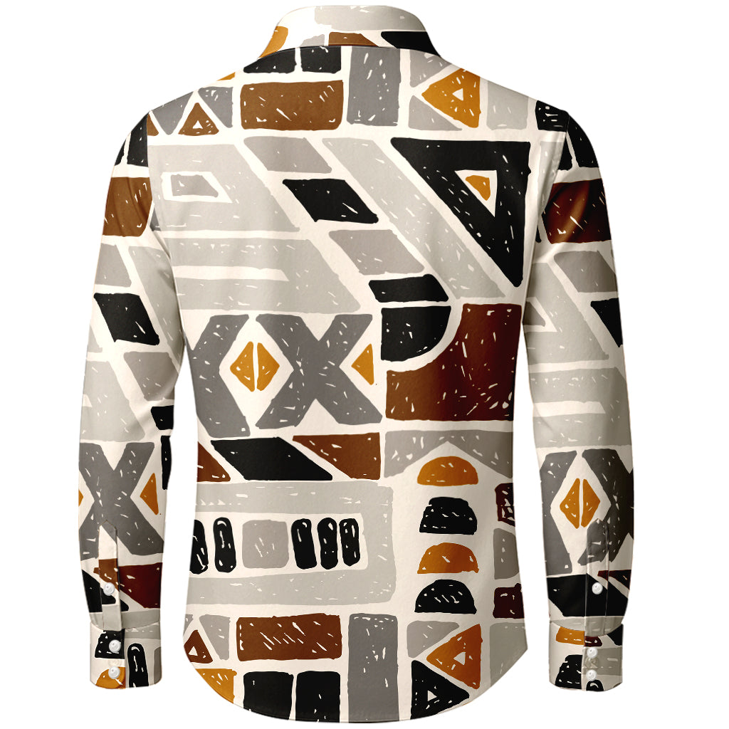 Abstract Tribal Mosaic Long-Sleeve Shirt