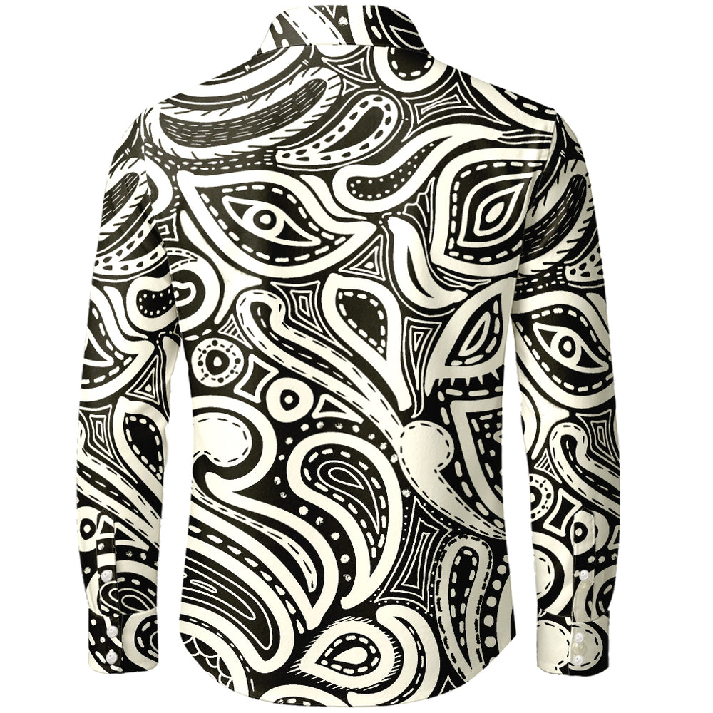Monochrome Doodle Paisley Long-Sleeve Shirt
