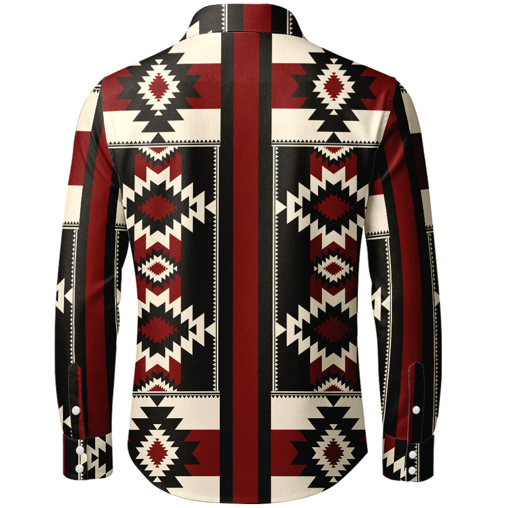 Tribal-Inspired Geo Motif Long-Sleeve Shirt