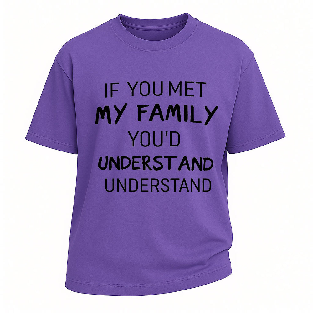 Regular price $26.99 USDLight-hearted humor meets everyday comfort with the LouMark "If You Met My Family You’d Understand" t-shirt. Featuring a witty slogan in bold print, this tee is perfect for anyone who embraces family quirks with a sense of humor. Made from 260G heavy-weight 100% cotton, it delivers oversized comfort, durability, and a relaxed streetwear fit for casual days or weekend fun.