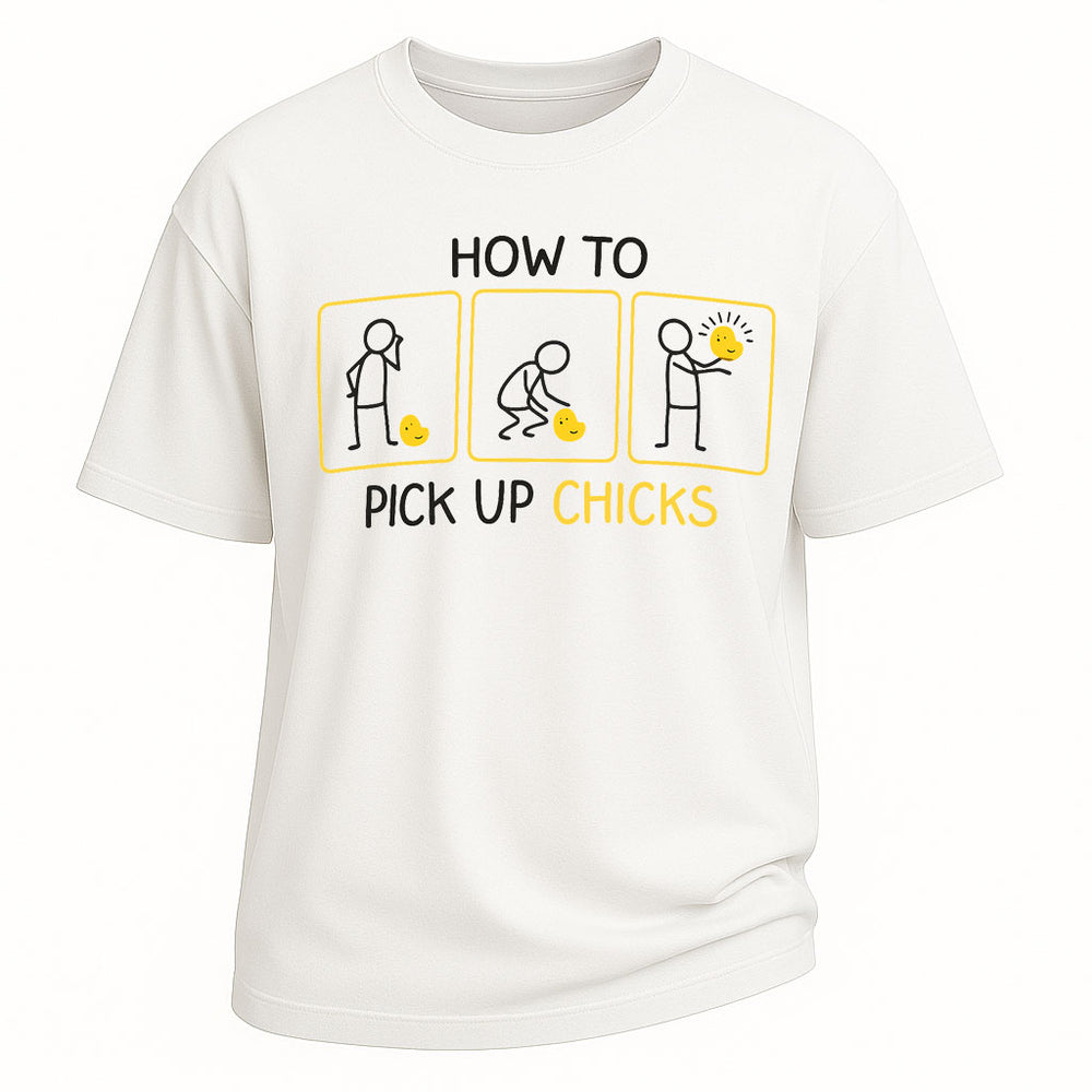 Regular price $26.99 USDAdd humor and playfulness to your style with the LouMark "How To Pick Up Chicks" graphic t-shirt. Featuring a witty illustrated design with stick figures and little chicks, this tee is both funny and eye-catching. Crafted from premium heavy-weight cotton, it delivers durability, comfort, and an oversized fit that works perfectly for casual wear and street style.