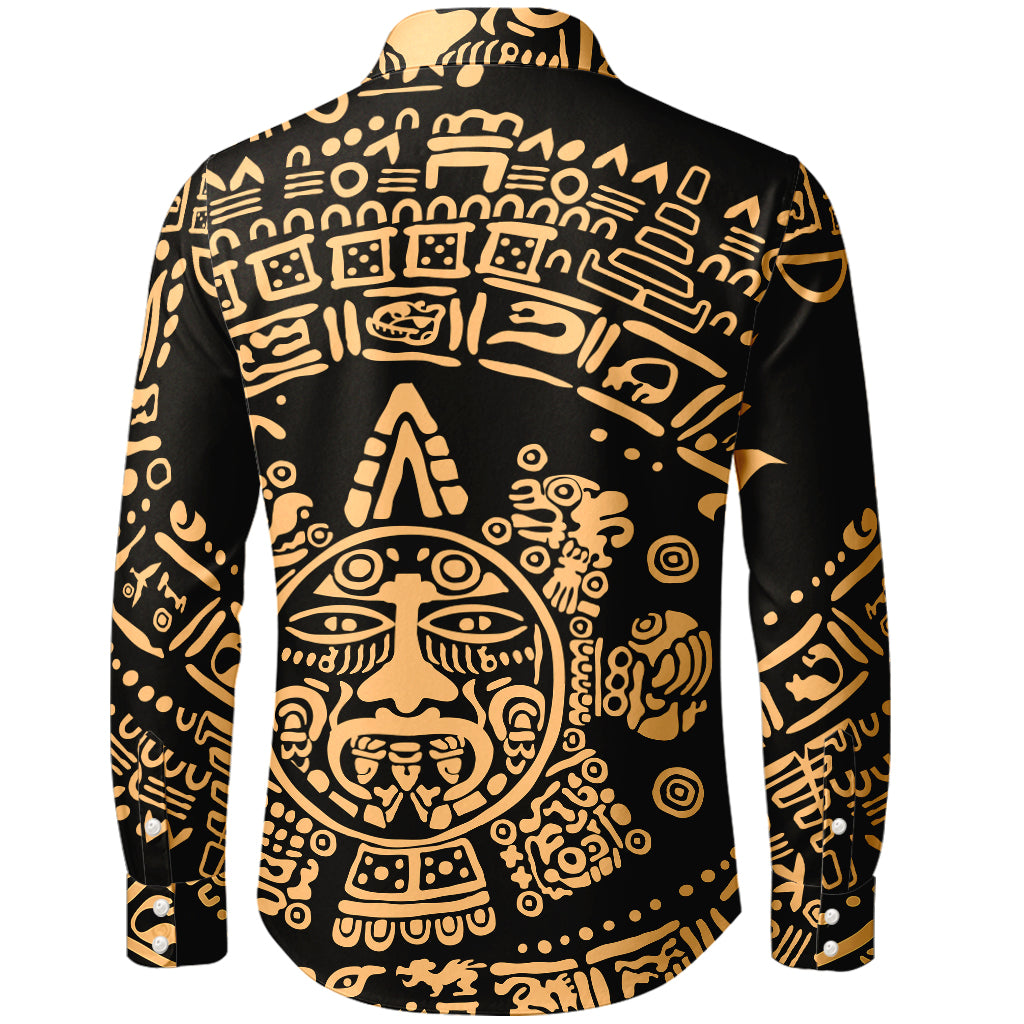 Regular price $29.99 USDBold and iconic. This long-sleeve button-up showcases an oversized “sun stone” glyph and concentric symbols in golden-sand linework over deep black. Printed edge-to-edge for a striking, poster-like effect. The smooth 100% polyester fabric is lightweight, wrinkle-resistant, and quick-drying—perfect for streetwear, festivals, and creative office fits.