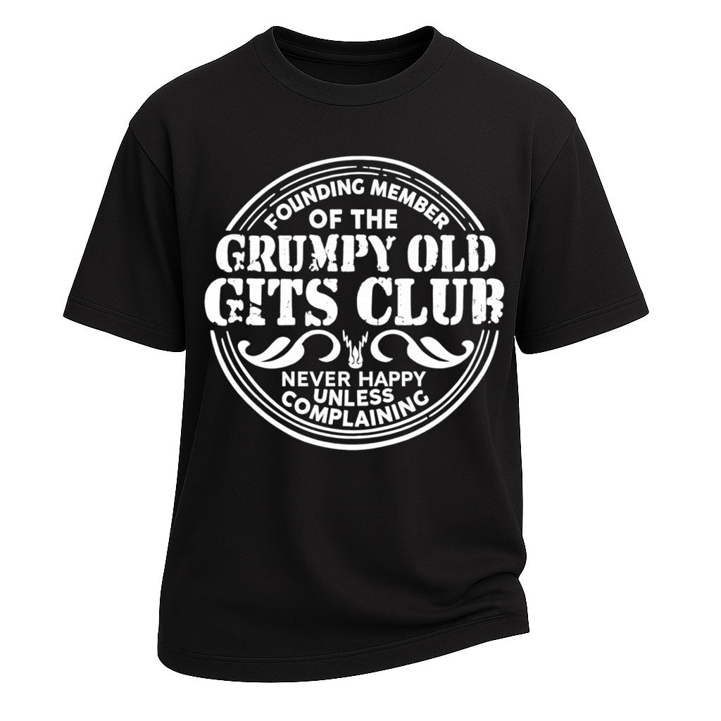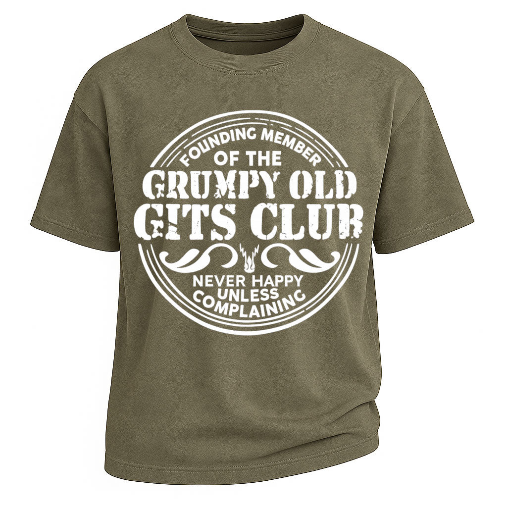 Regular price $26.99 USDShow your grumpy pride with this Grumpy Old Gits Club graphic short-sleeve t-shirt. Made from 260G 100% cotton, this heavyweight tee ensures comfort and durability. Featuring a bold circular stamp-style design with the slogan “FOUNDING MEMBER OF THE GRUMPY OLD GITS CLUB – NEVER HAPPY UNLESS COMPLAINING,” it’s the perfect mix of humor and vintage charm. Designed with a standard fit and crew neckline, this tee is ideal for casual wear, parties, or streetwear looks.