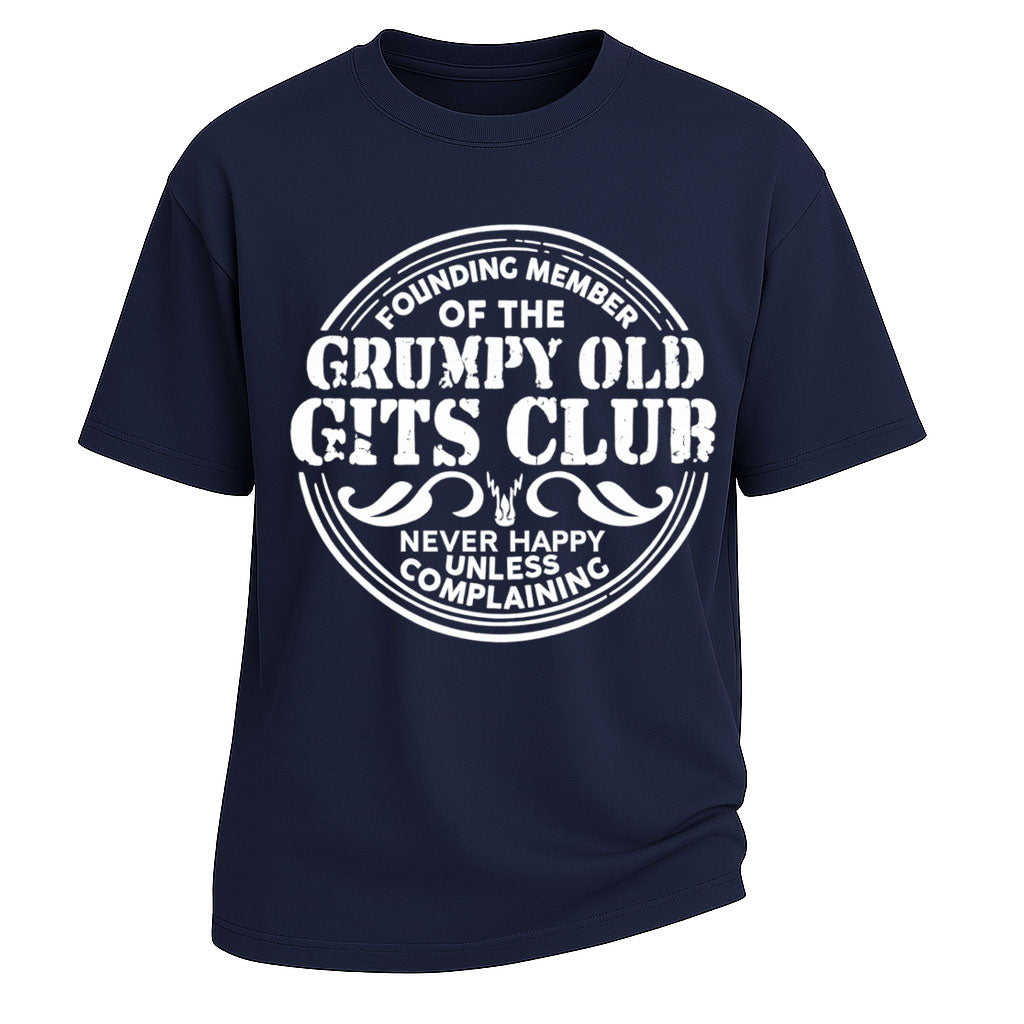 - Pattern: Circular badge-style graphic with “Grumpy Old Gits Club” slogan