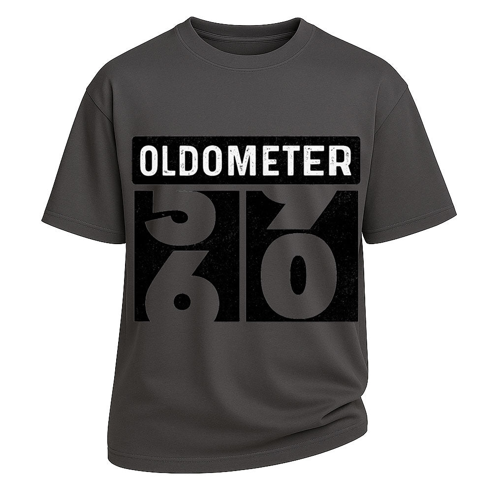 Hit a milestone? LouMark’s “Oldometer 60” T-shirt rolls in with vintage grit and birthday humor. The odometer flip graphic makes aging look like a well-earned badge of mileage — rugged, bold, and built to last. Army green cotton adds that classic tough-guy edge.