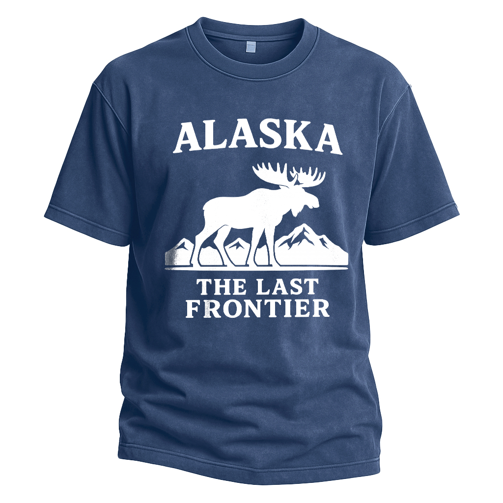 Regular price $26.99 USDCelebrate the rugged beauty of the Last Frontier. This classic Alaska tee features a bold silhouette of a moose against mountain peaks, framed by the iconic title: “Alaska – The Last Frontier.” Simple, striking, and timeless — the perfect souvenir for adventurers, tourists, and nature lovers alike.