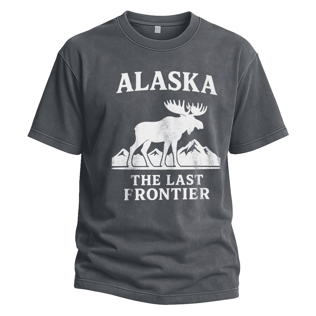 Celebrate the rugged beauty of the Last Frontier. This classic Alaska tee features a bold silhouette of a moose against mountain peaks, framed by the iconic title: “Alaska – The Last Frontier.” Simple, striking, and timeless — the perfect souvenir for adventurers, tourists, and nature lovers alike.