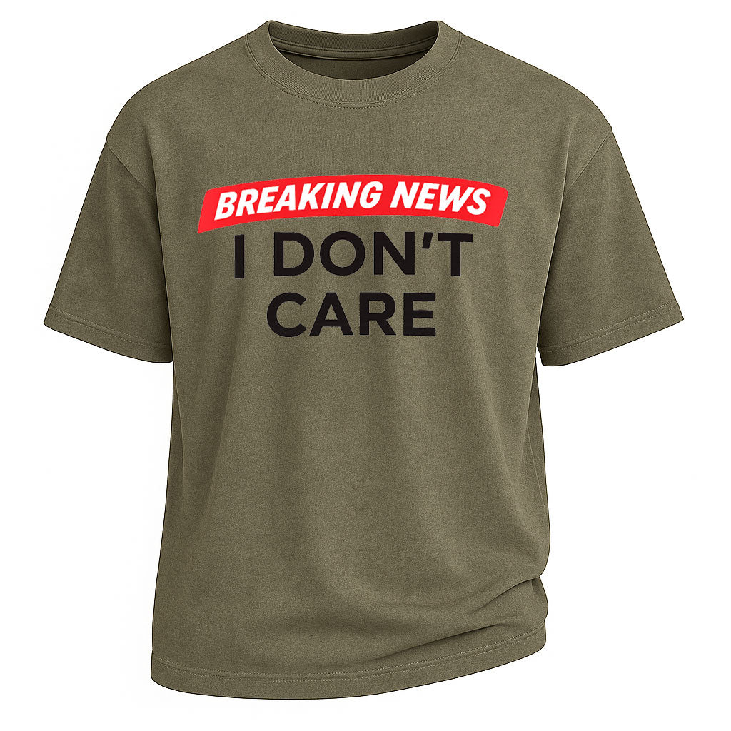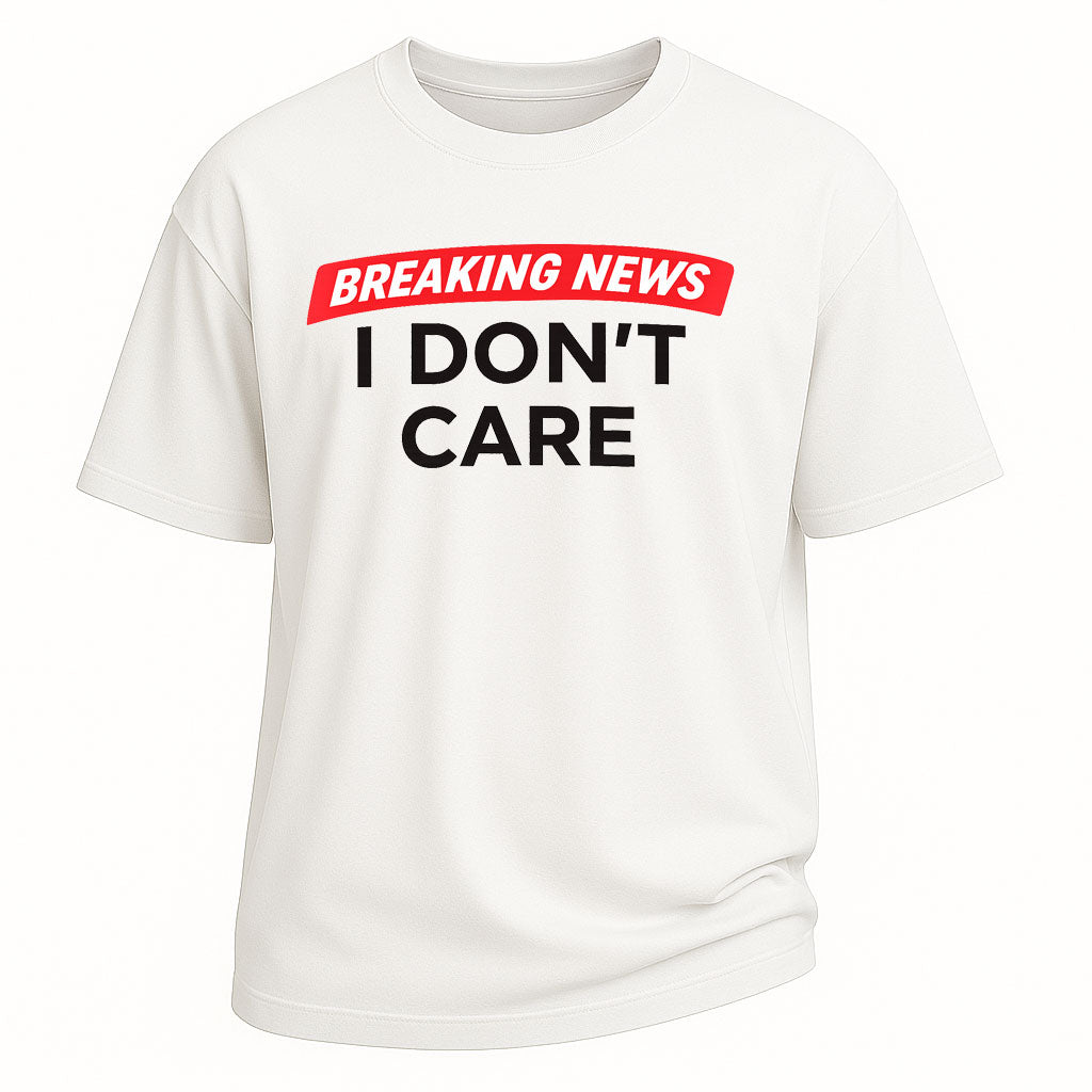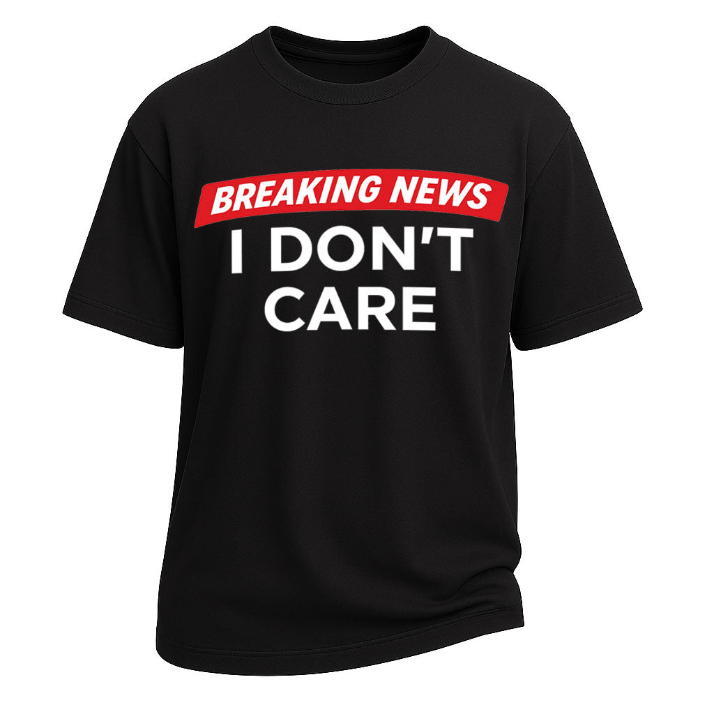 Regular price $24.99 USDDelve into humor and bold style with this Breaking News slogan short-sleeve t-shirt. Made from 260G 100% cotton, the heavyweight fabric offers both comfort and structure. The front features the witty print “BREAKING NEWS – I DON’T CARE,” delivering a sarcastic and captivating streetwear vibe. With a standard fit and crew neckline, this tee orchestrates casual versatility for daily wear, parties, or outdoor looks.