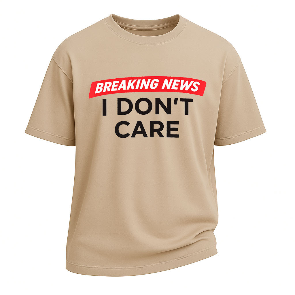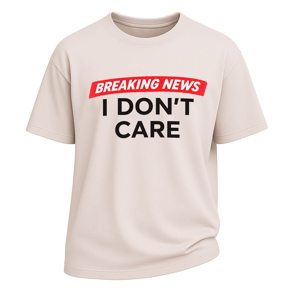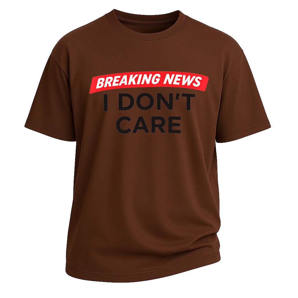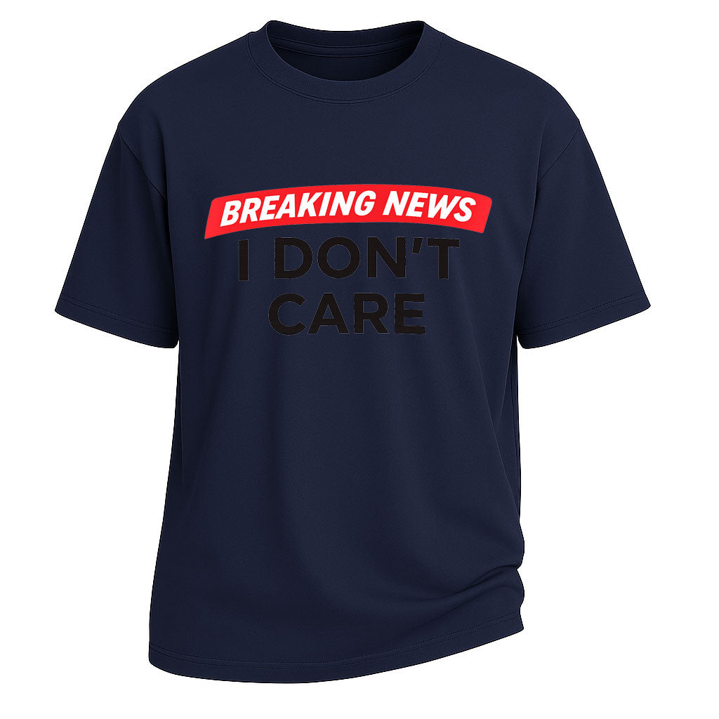 Regular price $24.99 USDDelve into humor and bold style with this Breaking News slogan short-sleeve t-shirt. Made from 260G 100% cotton, the heavyweight fabric offers both comfort and structure. The front features the witty print “BREAKING NEWS – I DON’T CARE,” delivering a sarcastic and captivating streetwear vibe. With a standard fit and crew neckline, this tee orchestrates casual versatility for daily wear, parties, or outdoor looks.