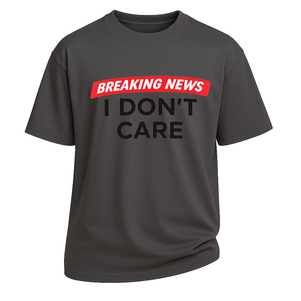 Delve into humor and bold style with this Breaking News slogan short-sleeve t-shirt. Made from 260G 100% cotton, the heavyweight fabric offers both comfort and structure. The front features the witty print “BREAKING NEWS – I DON’T CARE,” delivering a sarcastic and captivating streetwear vibe. With a standard fit and crew neckline, this tee orchestrates casual versatility for daily wear, parties, or outdoor looks.