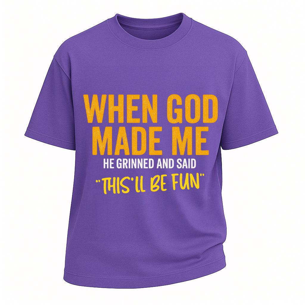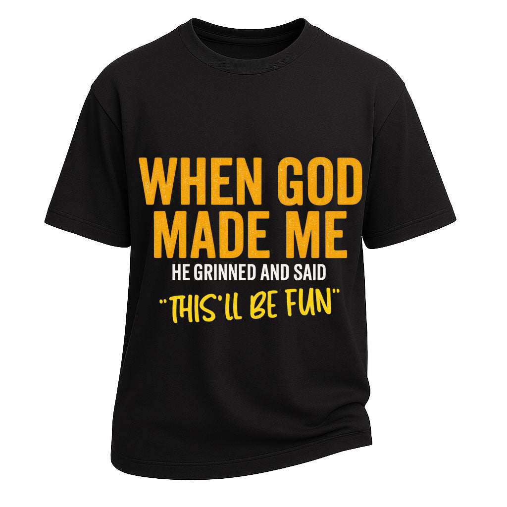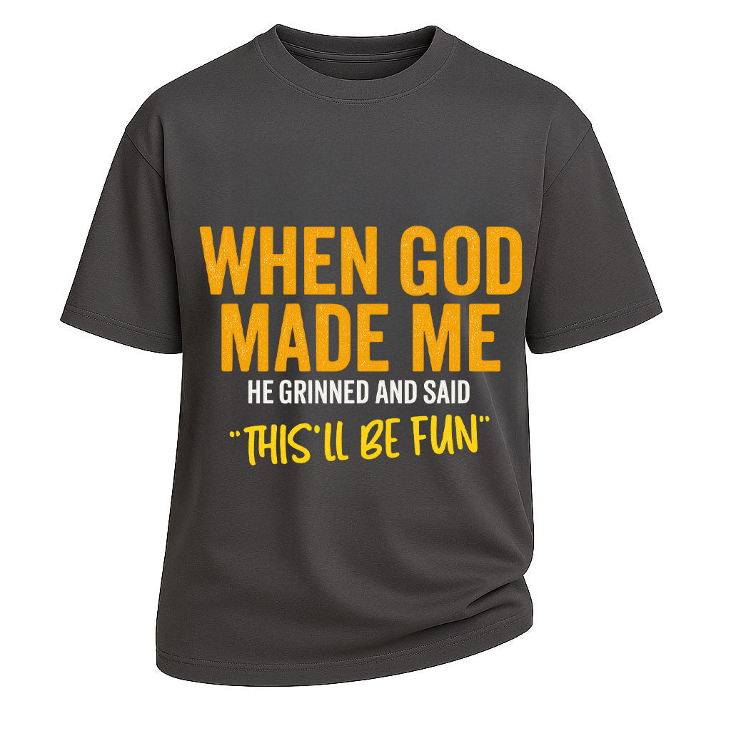 Introducing the tee for every wild soul who knows they were made for a good time. The LouMark “When God Made Me” T-shirt brings bold humor and divine mischief together in one standout design.