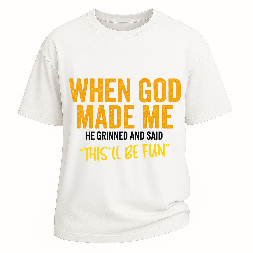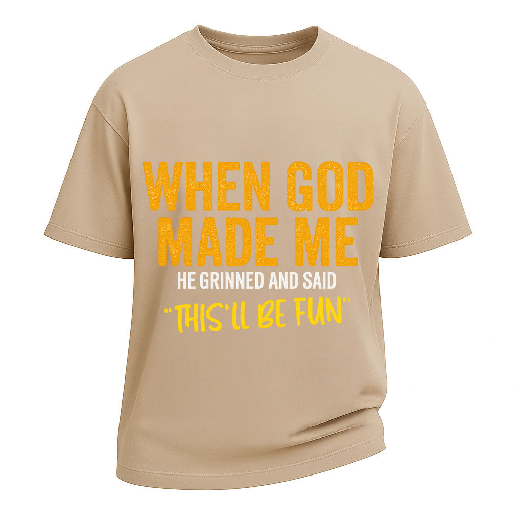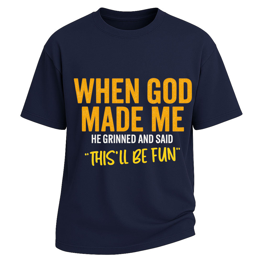 Introducing the tee for every wild soul who knows they were made for a good time. The LouMark “When God Made Me” T-shirt brings bold humor and divine mischief together in one standout design.