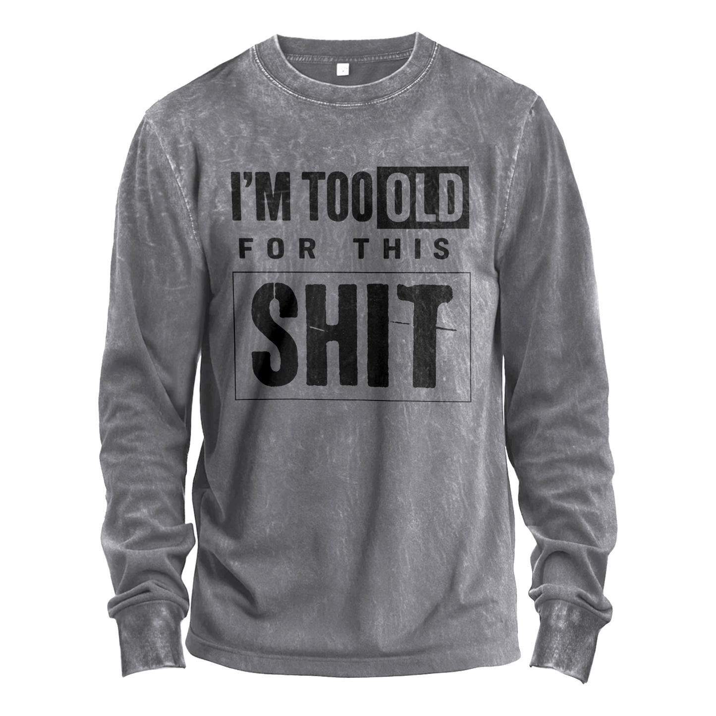 Regular price $29.99 USDBlunt truth in bold type. This vintage-washed army-green long-sleeve tee features big distressed white lettering that reads “I’M TOO OLD FOR THIS SHIT.” Built from heavyweight cotton with a soft, broken-in feel right out of the bag.