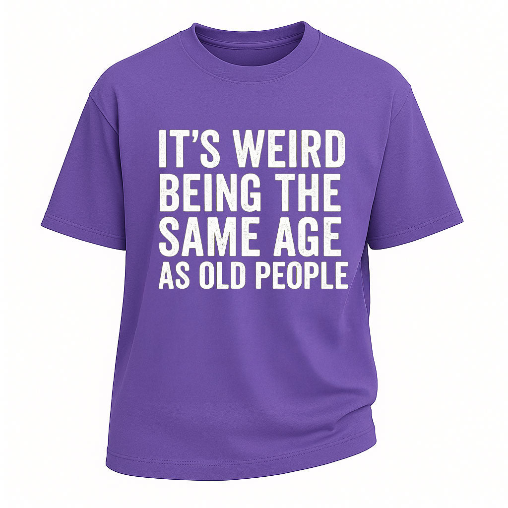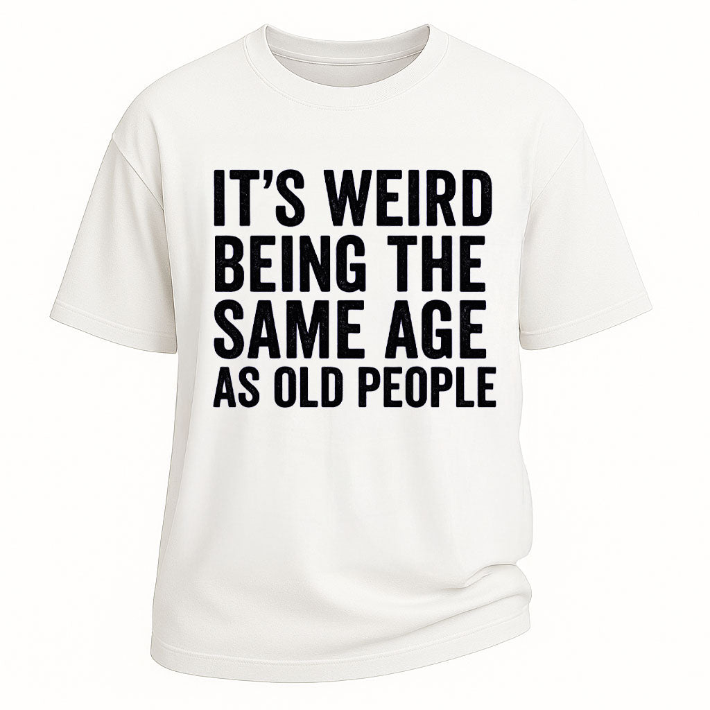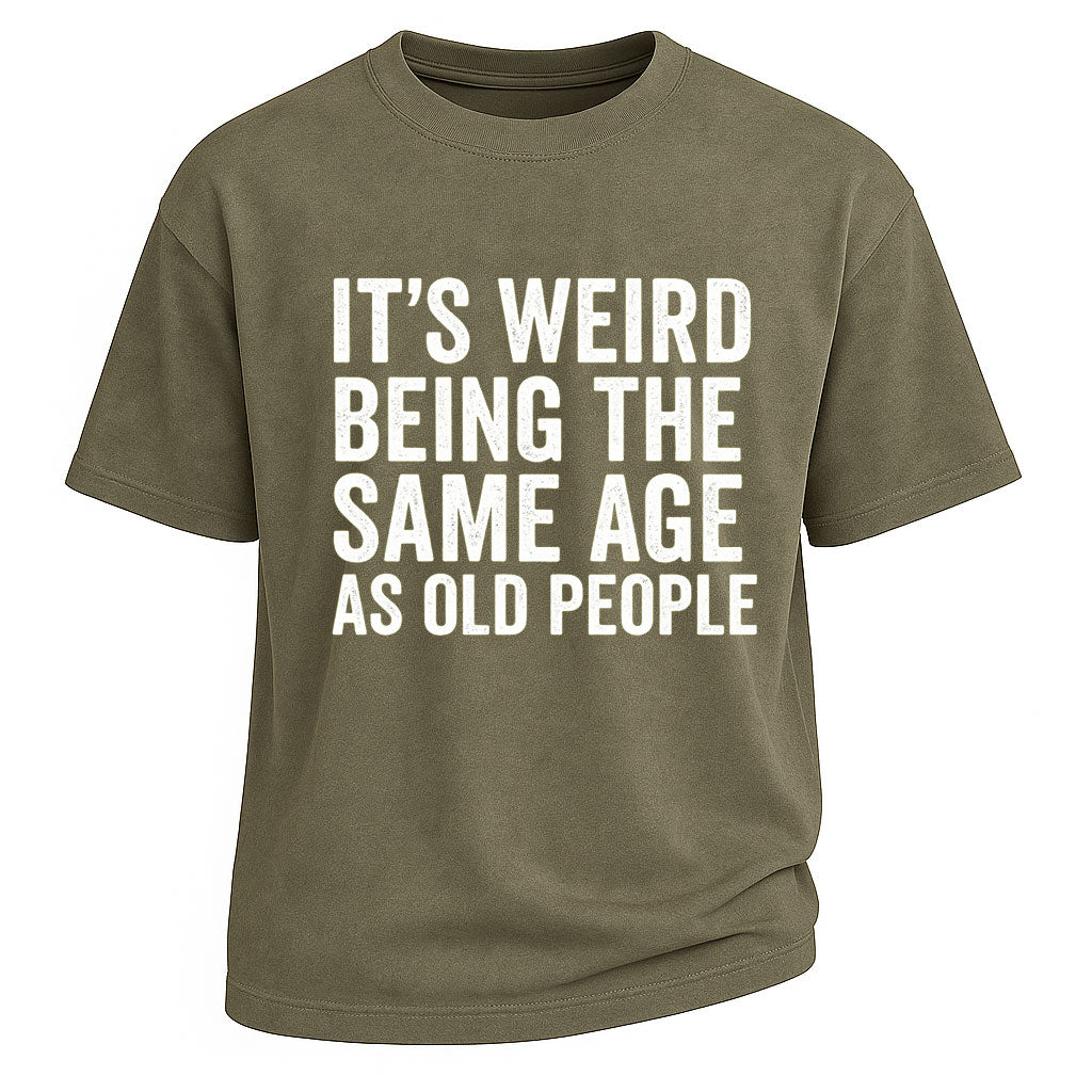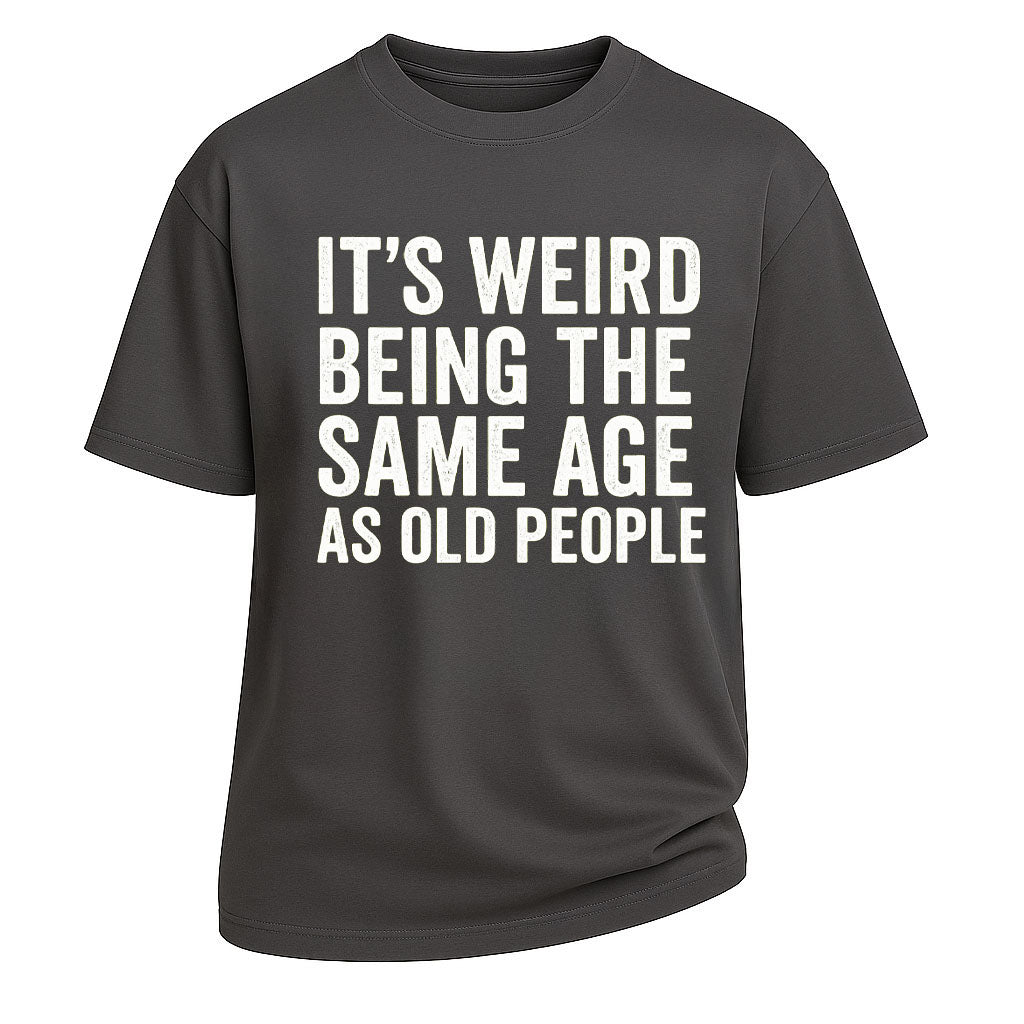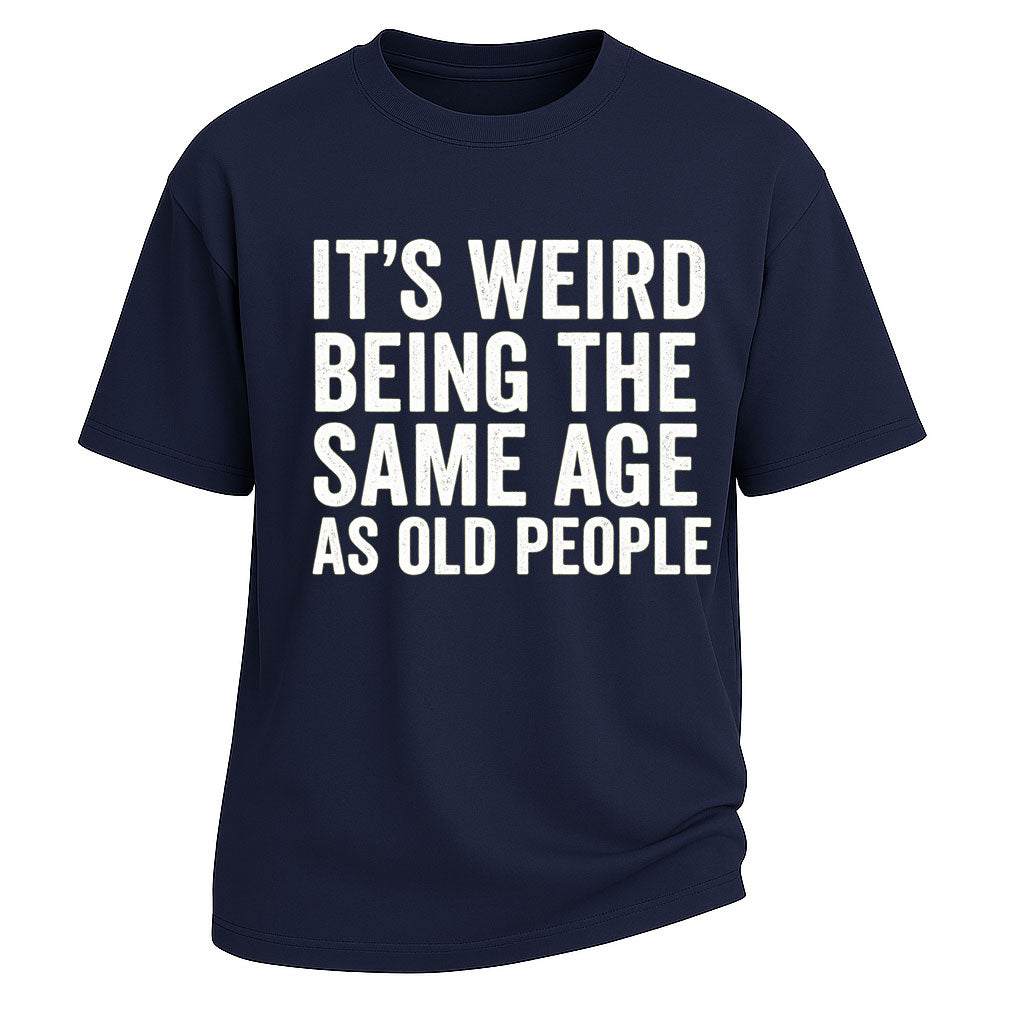 Aging is weird—especially when you realize you’ve become “those old people.” This funny LouMark tee speaks for the youthfully aging spirit, delivering a laugh with its bold typographic statement: “It’s Weird Being The Same Age As Old People.”