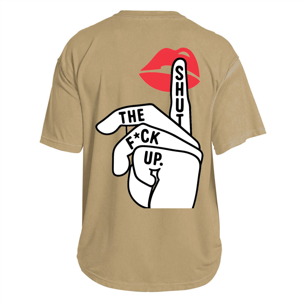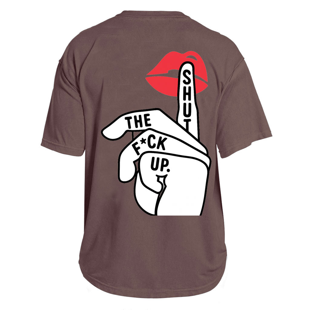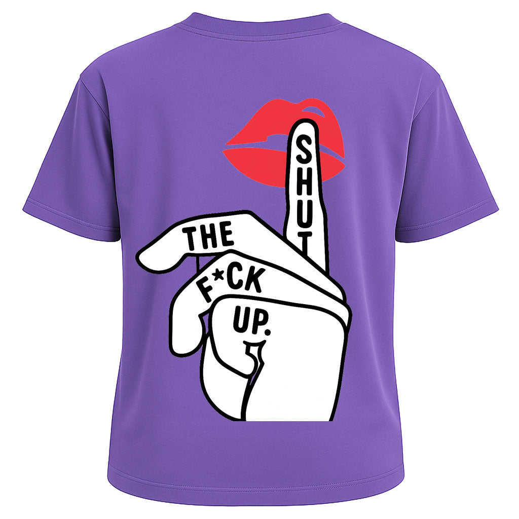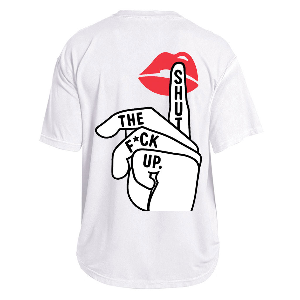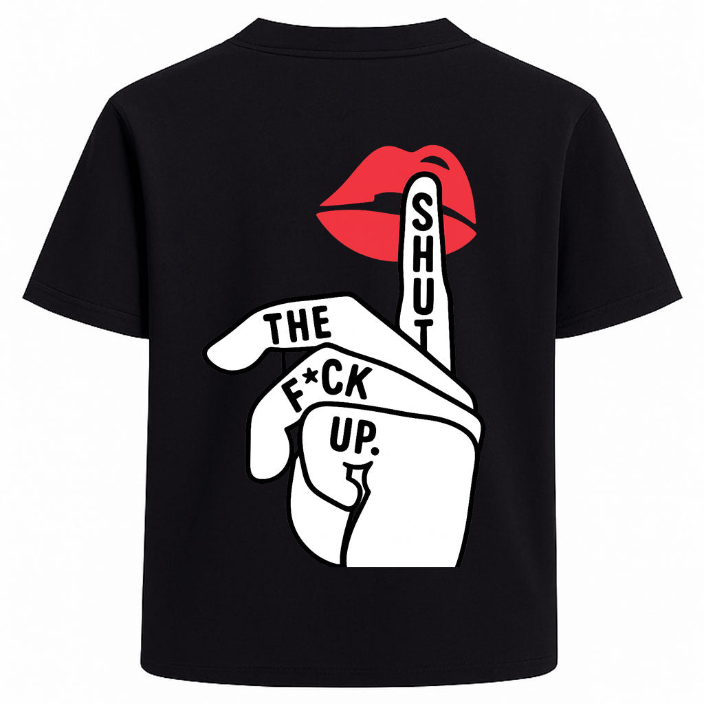 Silence speaks volumes—especially when paired with bold graphics and LouMark edge. This tee delivers your mood with unmistakable attitude: graphic lips, a hand gesture, and typography that makes no apologies.
