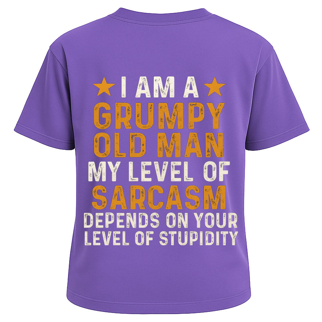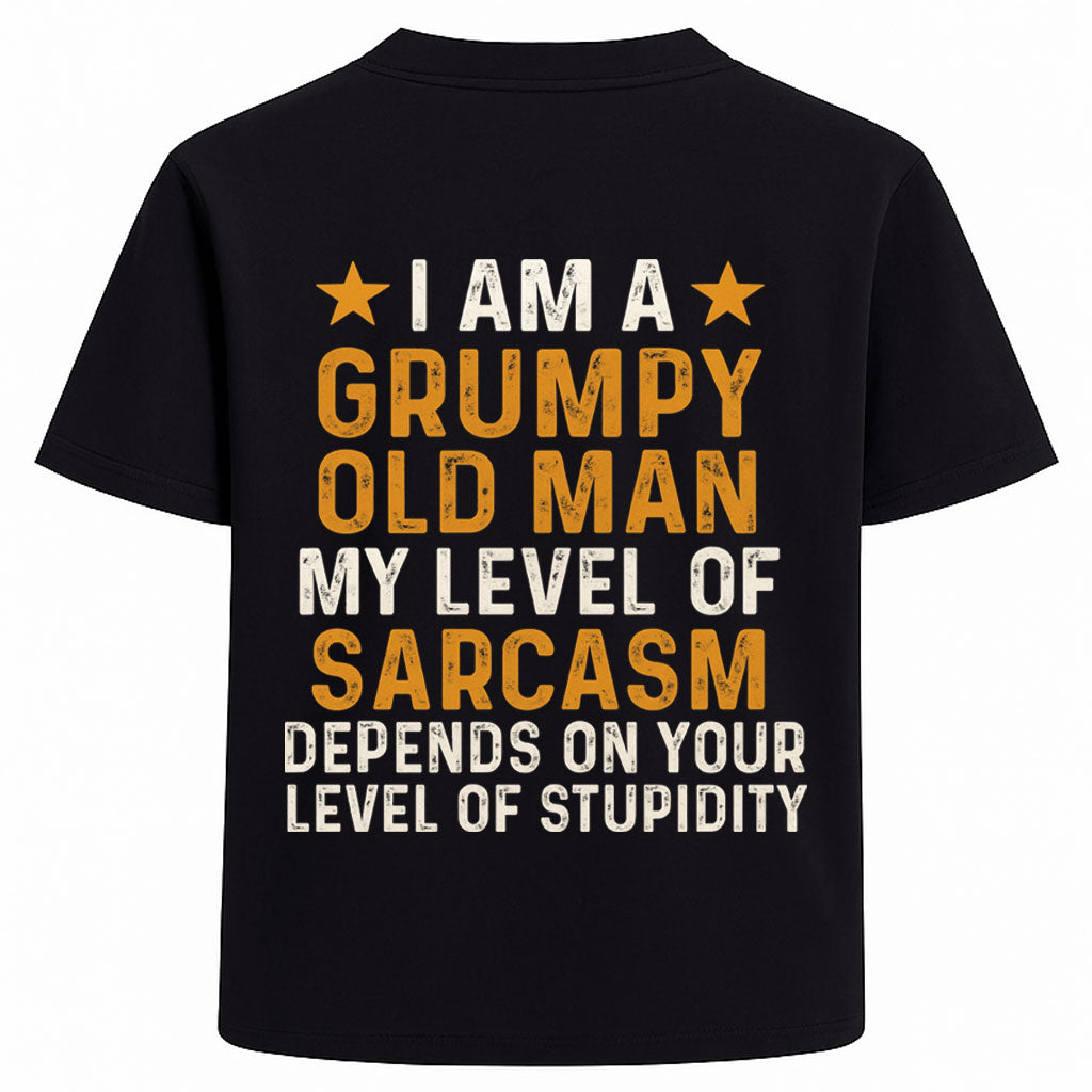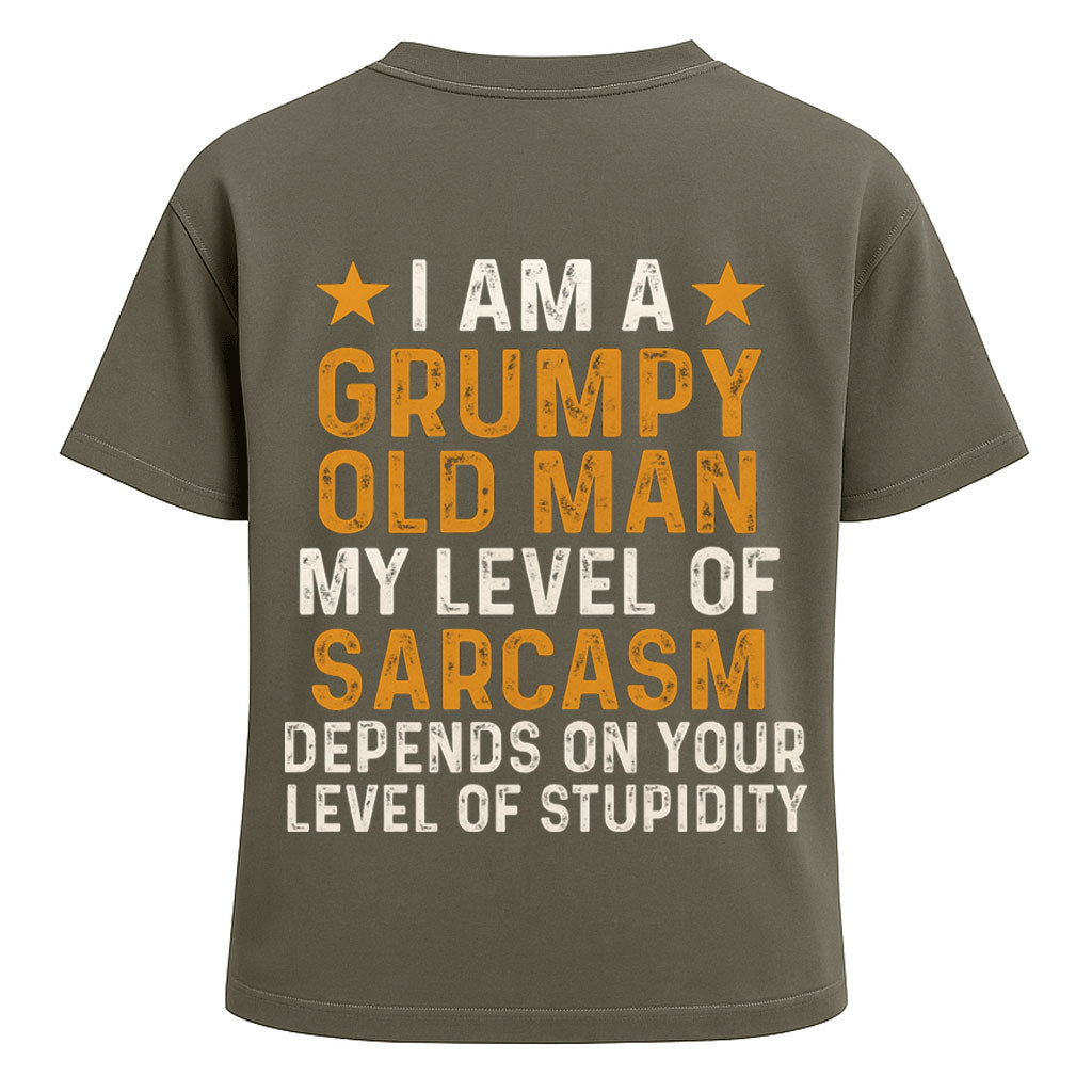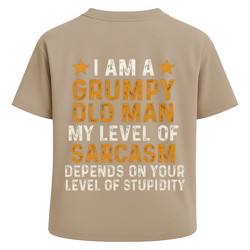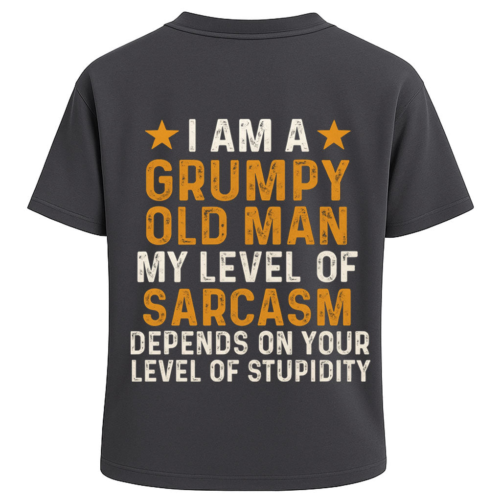 Regulärer Preis $26.99 USDShow off your humor with LouMark’s “Grumpy Old Man” Sarcasm Tee. Made from 260G pure cotton with an oversized fit, this T-shirt delivers comfort with attitude. The bold back print reads: “I Am a Grumpy Old Man. My Level of Sarcasm Depends on Your Level of Stupidity,” making it the perfect shirt for those who embrace wit and unapologetic honesty.