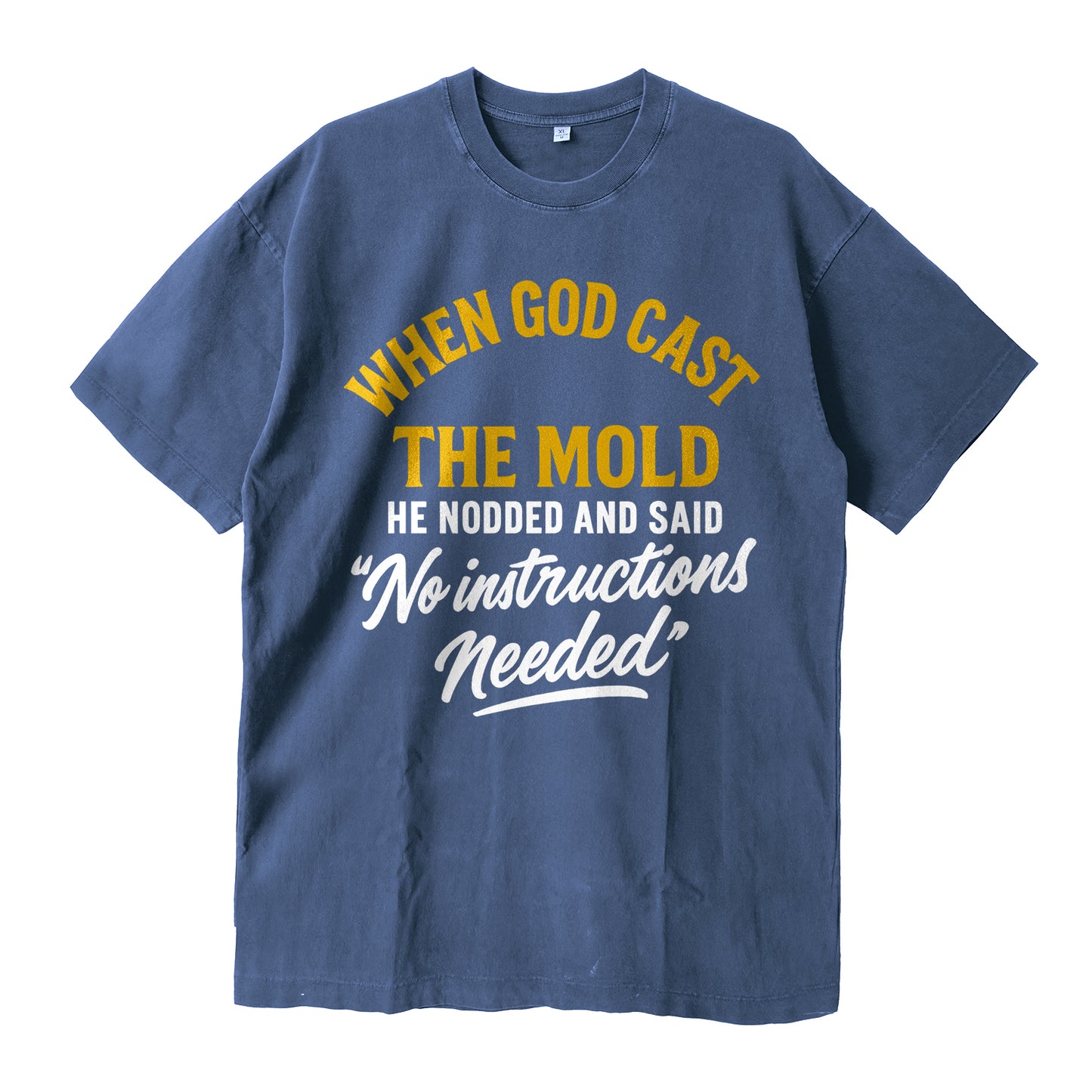 Regulärer Preis $26.99 USDOwn your one-of-a-kind spirit. LouMark’s When God Cast The Mold Tee stacks bold gold and white typography that reads: “WHEN GOD CAST THE MOLD — HE NODDED AND SAID ‘No instructions needed.’” Cut from dense 260g cotton with a washed black finish, this relaxed tee brings day-one comfort and a confident faith-forward vibe.