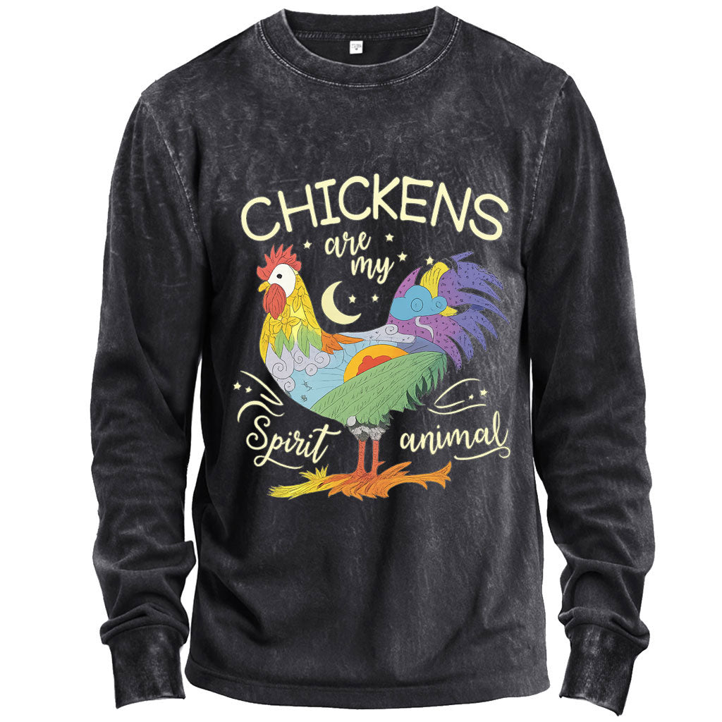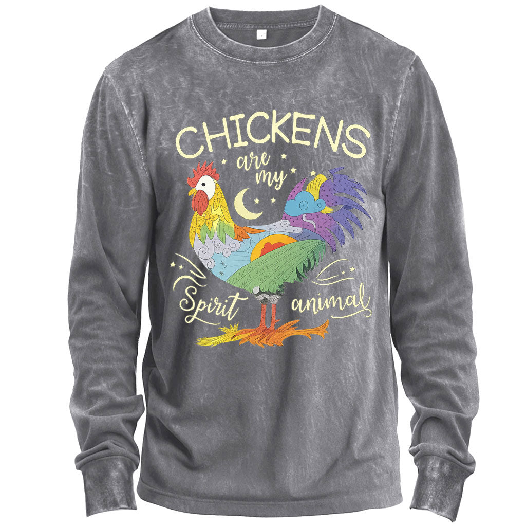 Bring some cozy holiday charm to your wardrobe with the LouMark “Chickens Spirits Unite” long sleeve tee. Featuring a whimsical chicken graphic and festive winter tones, this shirt delivers warm humor and relaxed seasonal style.