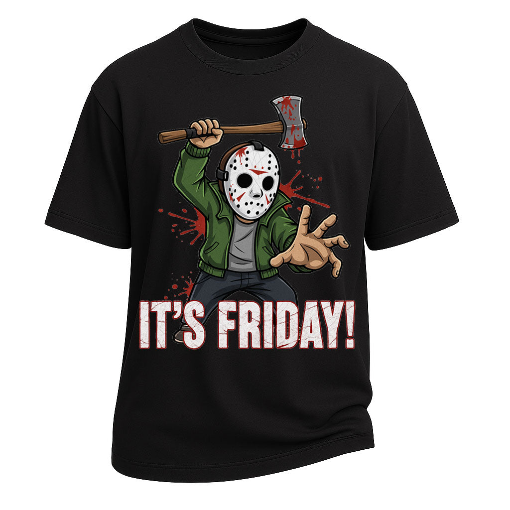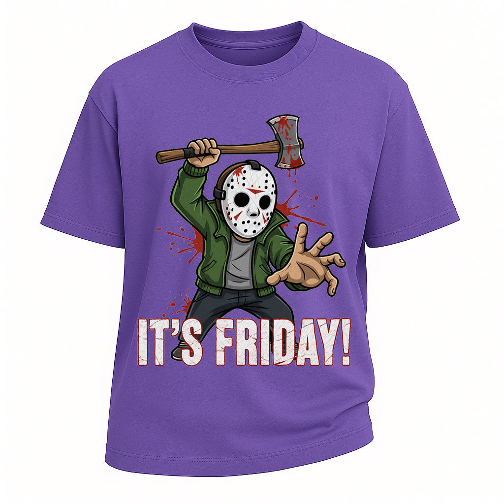 Precio regular $26.99 USDCelebrate Friday with a dark sense of humor in LouMark’s "It’s Friday" oversized tee. Made from 260G heavyweight 100% cotton, this shirt combines comfort and durability in an oversized fit. Featuring a bold horror-inspired print of a masked figure wielding an axe with blood-splatter detail, it’s perfect for fans of cult classics and those who like their weekends with a twist of dark fun.