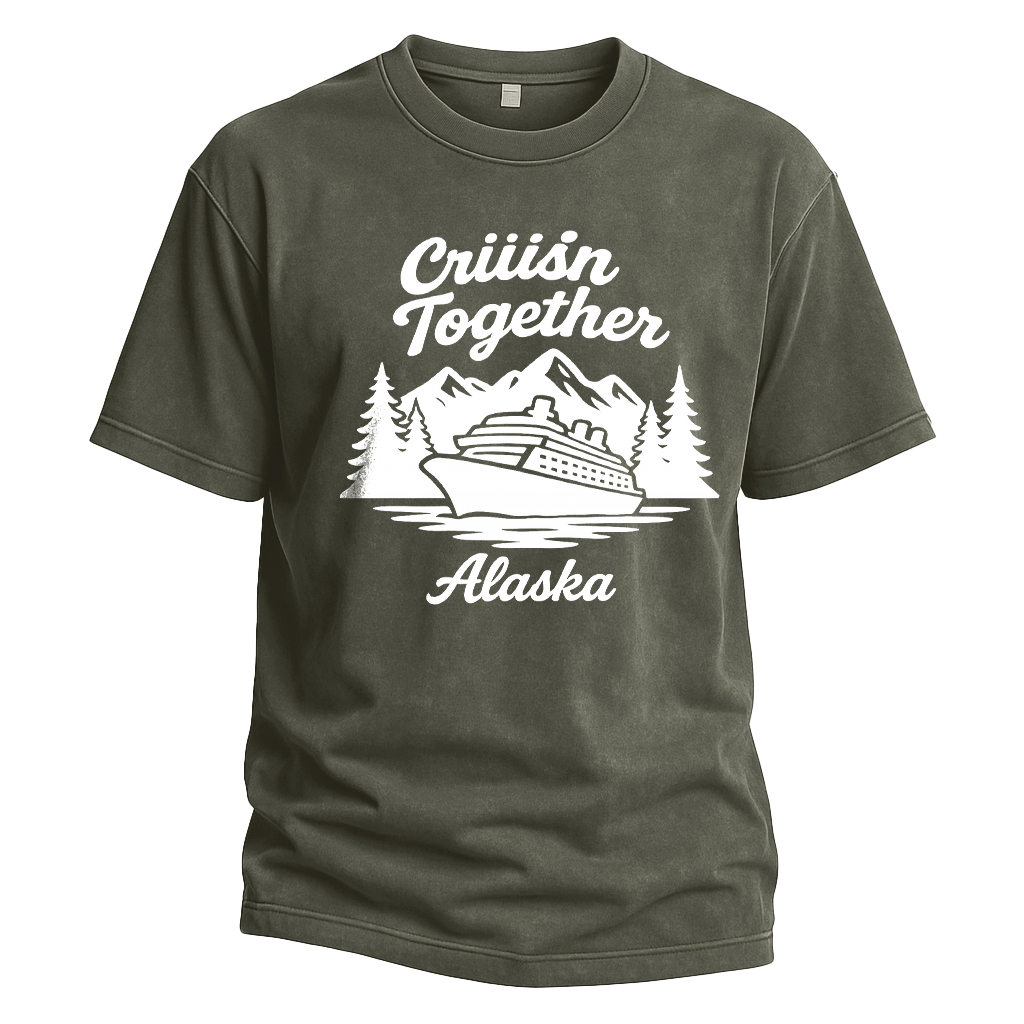 Celebrate your epic voyage with the perfect tee for couples, families, or cruise crews. The “Cruisin’ Together – Alaska” shirt captures the scenic majesty of glacier-lined waters, alpine peaks, and unforgettable memories. A stylish souvenir for matching groups or solo adventurers who love the open sea.