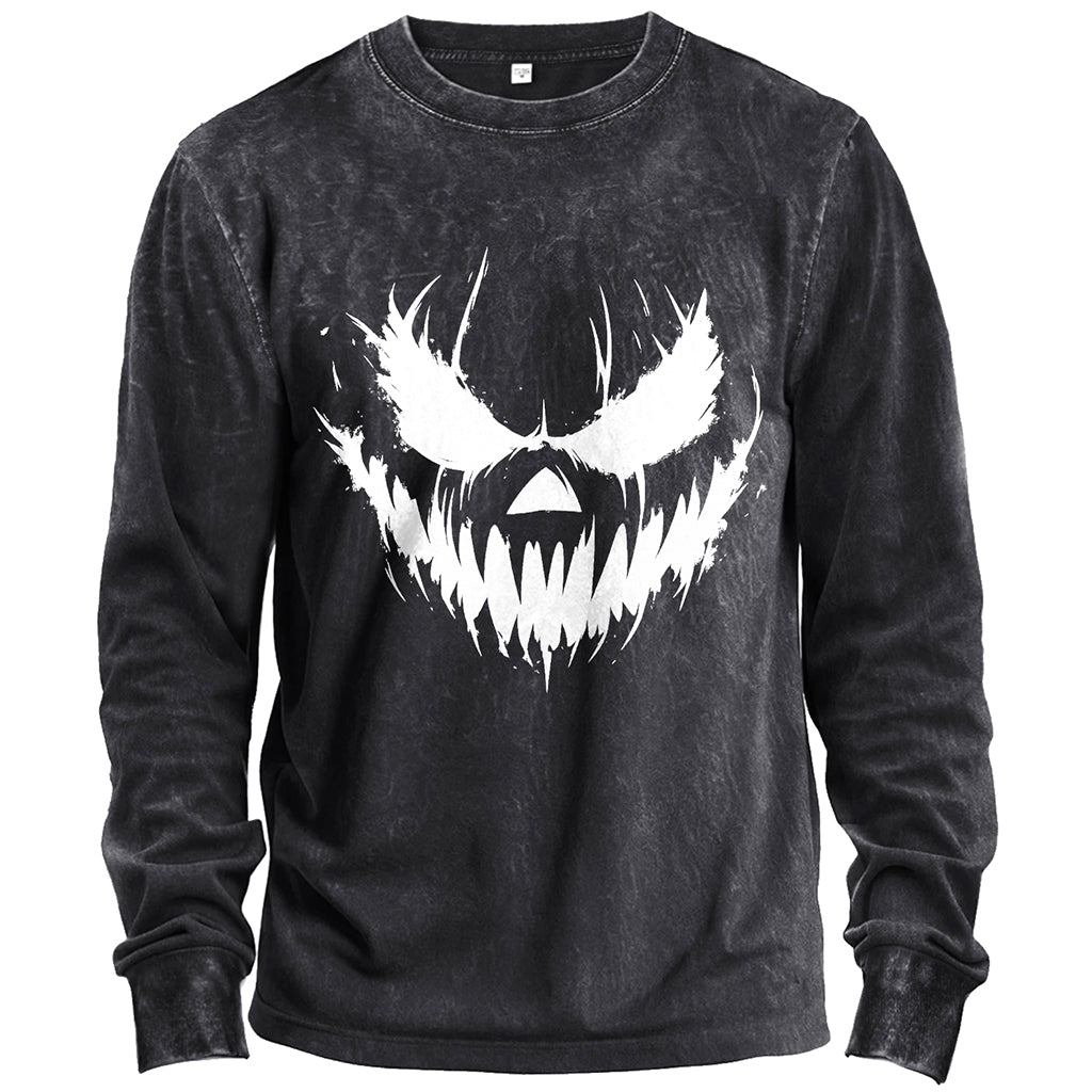 Preço Regular $29.99 USDEmbrace the dark side with LouMark’s Evil Grin Halloween long-sleeve t-shirt. Made from 230G 100% cotton, this heavy-weight tee ensures durability with all-day comfort. The standard fit design makes it versatile for layering or wearing solo. The bold front graphic features a sinister white grin with sharp jagged edges, creating a spooky Halloween-ready look with streetwear attitude. Ribbed cuffs and a crew neckline lock in the classic silhouette.