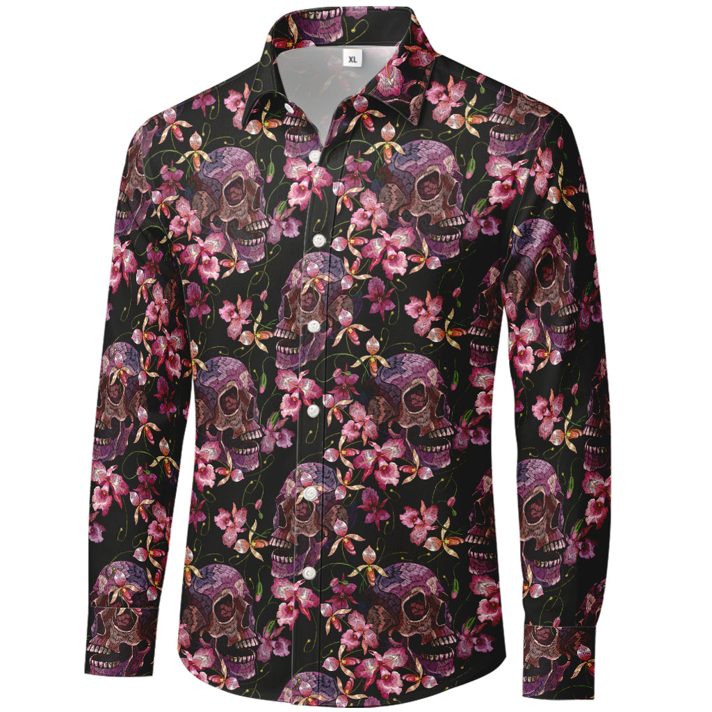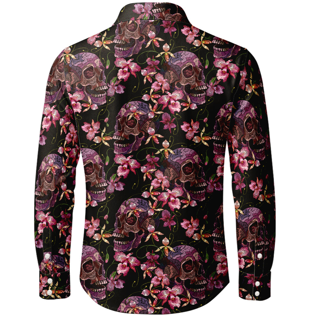 Midnight Floral Skulls Long-Sleeve Shirt