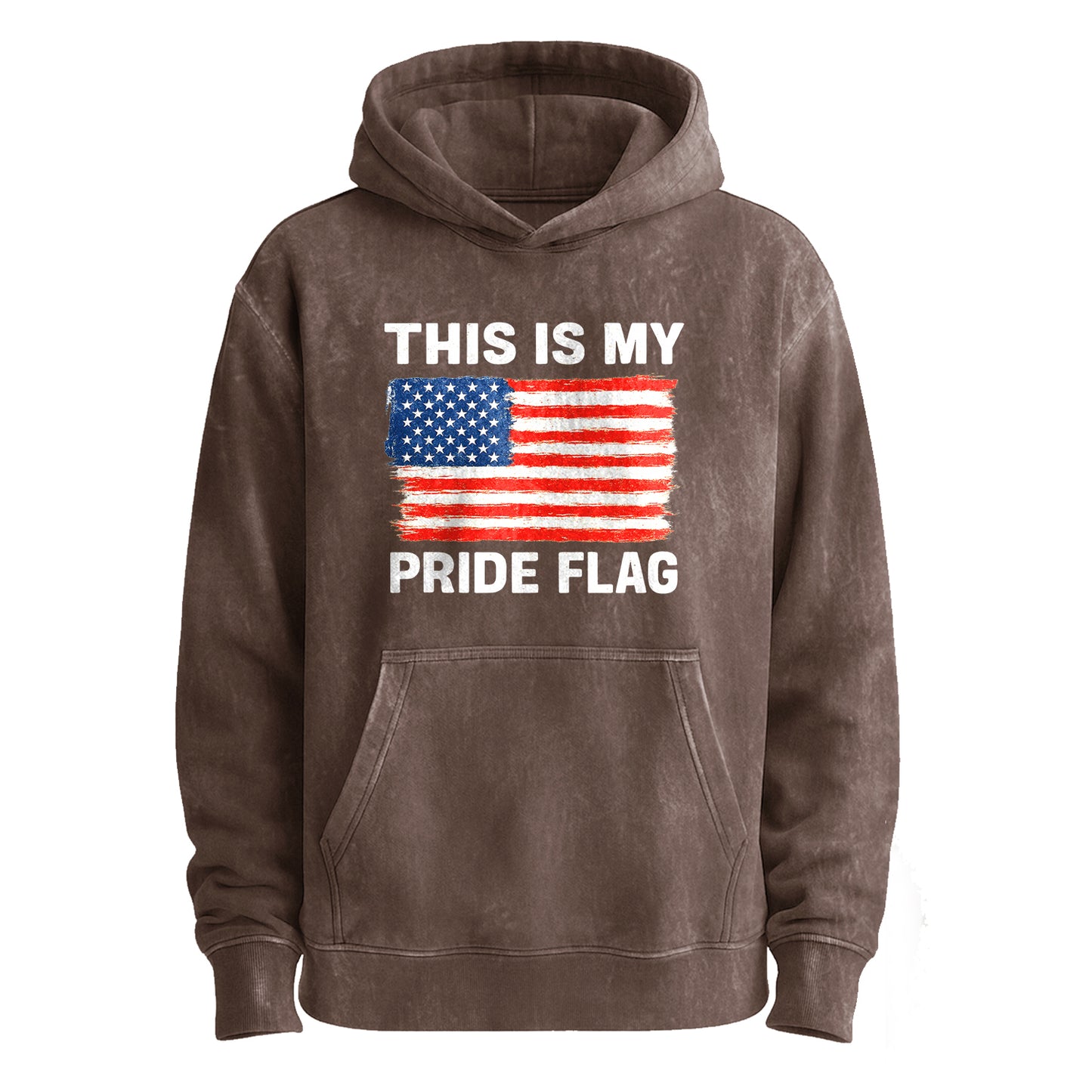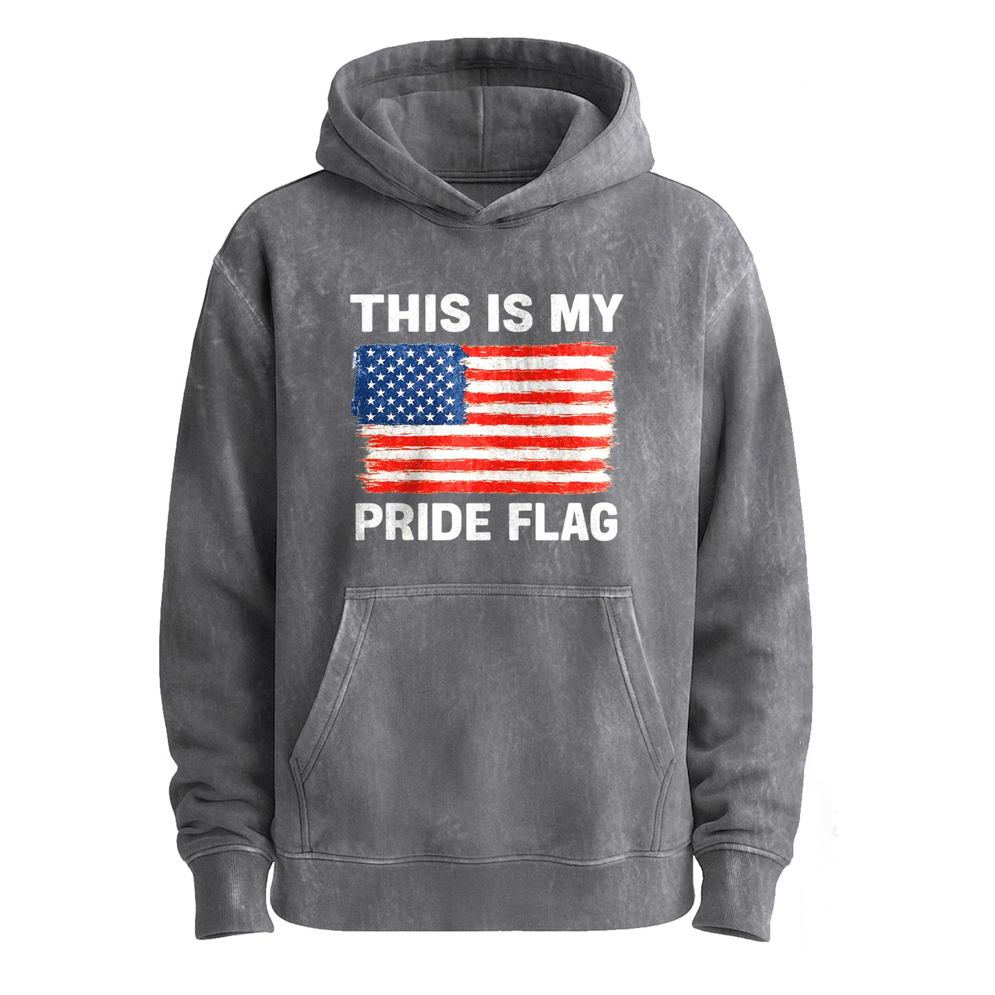 Show your stripes. This vintage-washed army-green hoodie features a hand-painted, distressed American flag graphic with the bold line “THIS IS MY PRIDE FLAG.” Built from beefy 350g 100% cotton, it delivers that soft, broken-in feel the moment you pull it on.