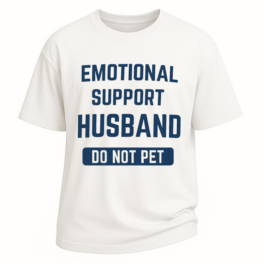 Show off your sense of humor with LouMark’s “Emotional Support Husband – Do Not Pet” T-shirt — a playful nod to the unsung heroes of relationships, perfect for husbands who keep calm and carry the emotional load with style.