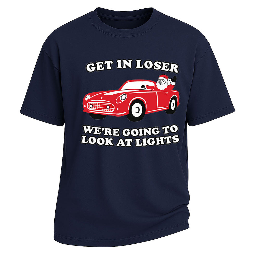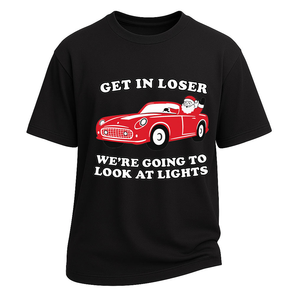 Preço Regular $24.99 USDLight up your holidays with LouMark’s “Get In Loser We’re Going To Look At Lights” T-shirt — a humorous Santa-in-a-car design that captures the fun side of Christmas road trips and festive adventures.