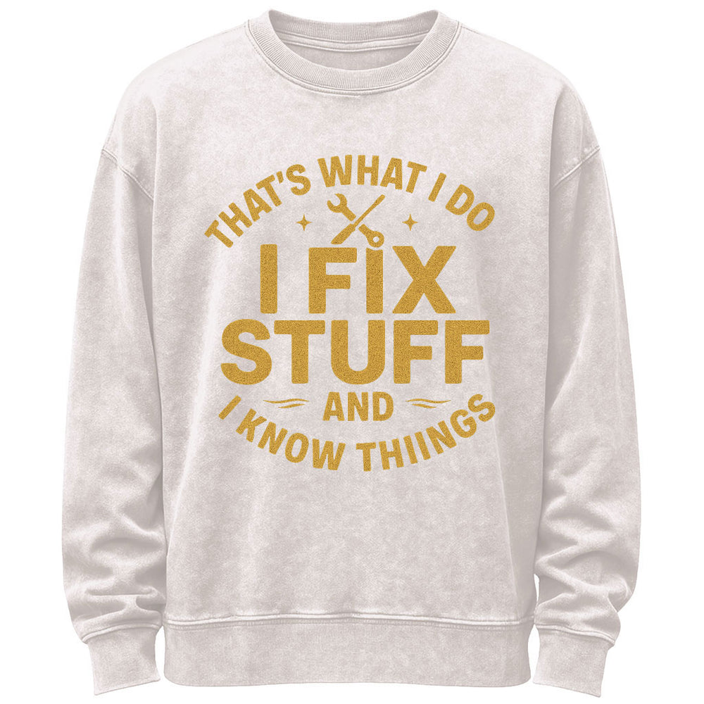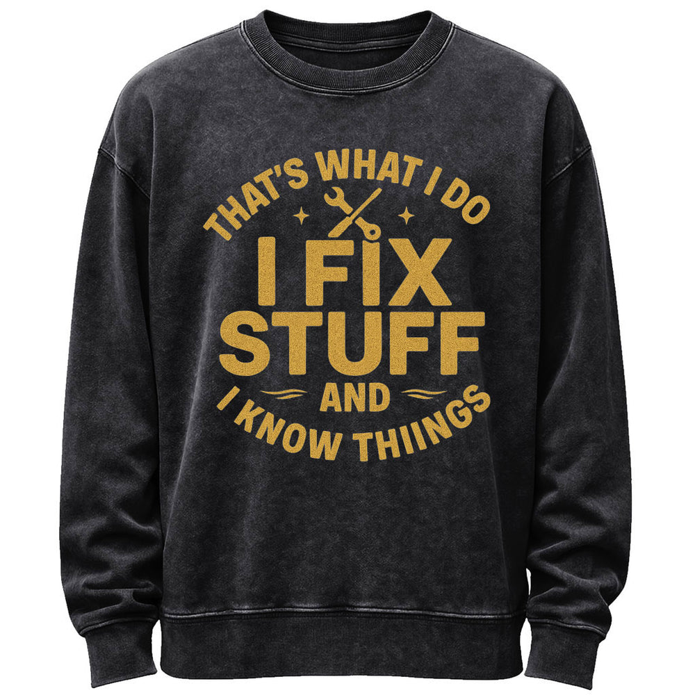 I Fix Stuff and I Know Things Mechanic Humor Sweatshirt