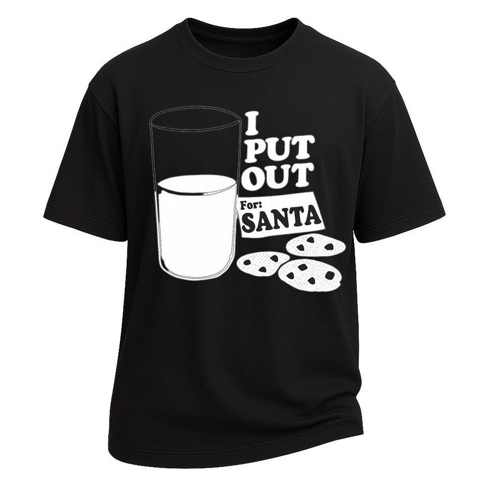 Make Santa smile this year with LouMark’s “I Put Out For Santa” T-shirt — a playful holiday classic featuring milk and cookies artwork that adds the perfect touch of humor to your festive wardrobe.