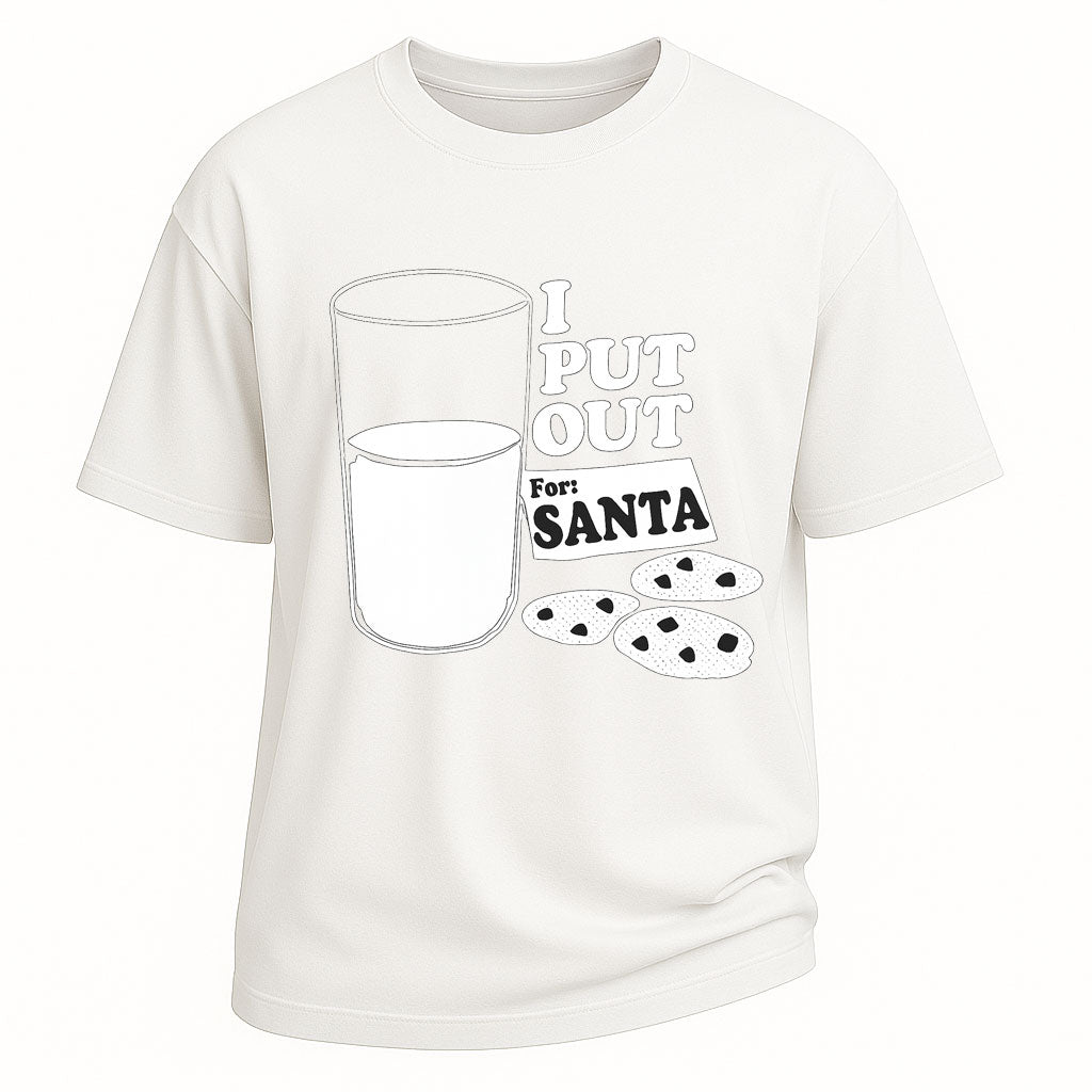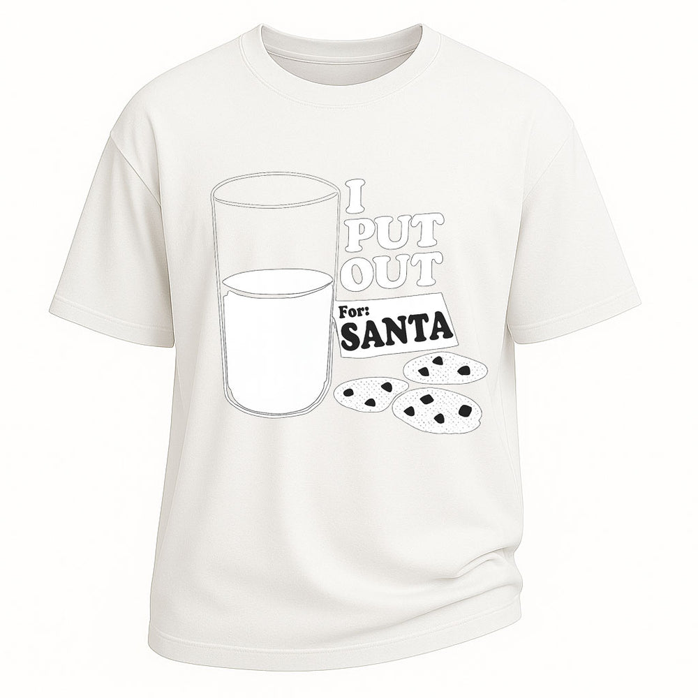 Preço Regular $24.99 USDMake Santa smile this year with LouMark’s “I Put Out For Santa” T-shirt — a playful holiday classic featuring milk and cookies artwork that adds the perfect touch of humor to your festive wardrobe.