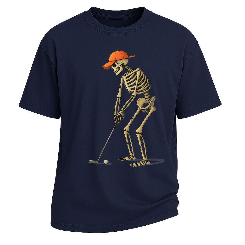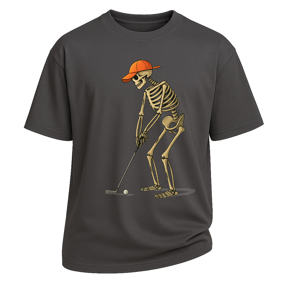 This tee mixes comfort with dark humor — ideal for golf lovers, Halloween rounds, or anyone who enjoys a playful twist on classic sportswear.