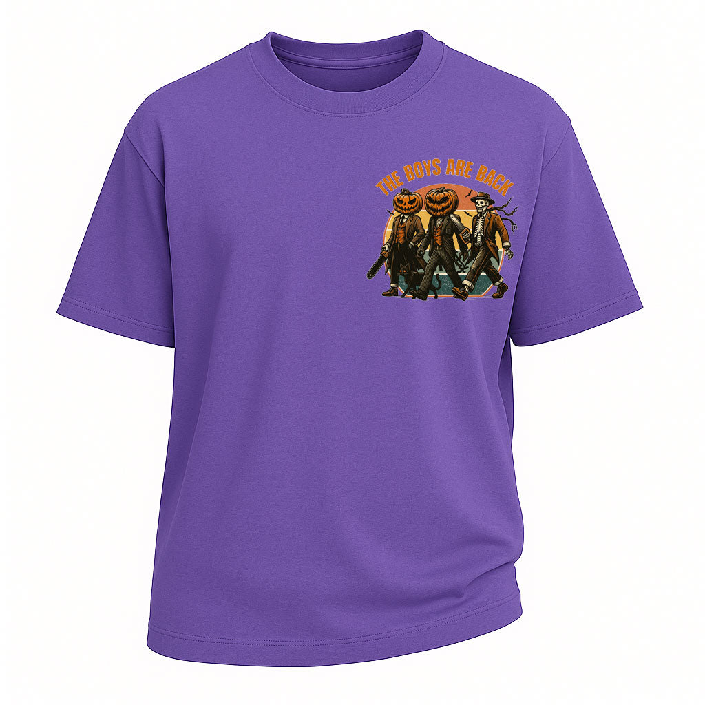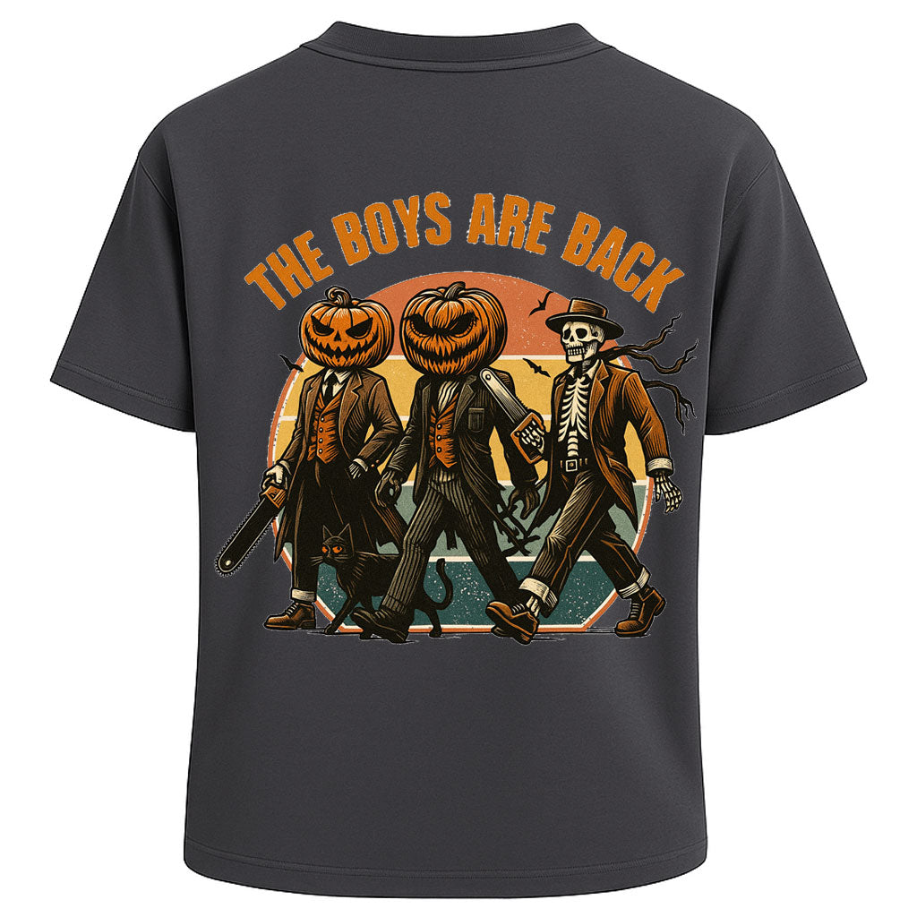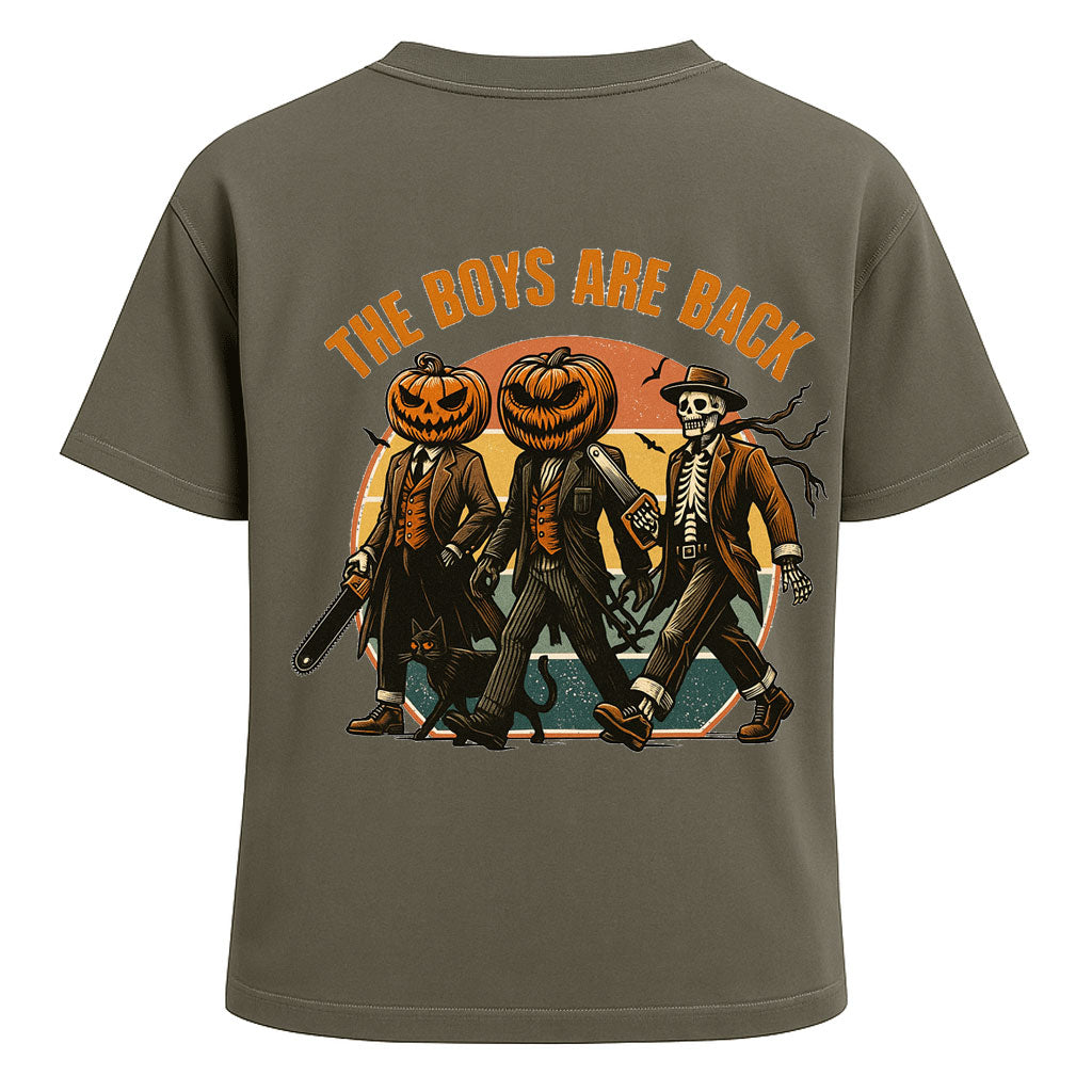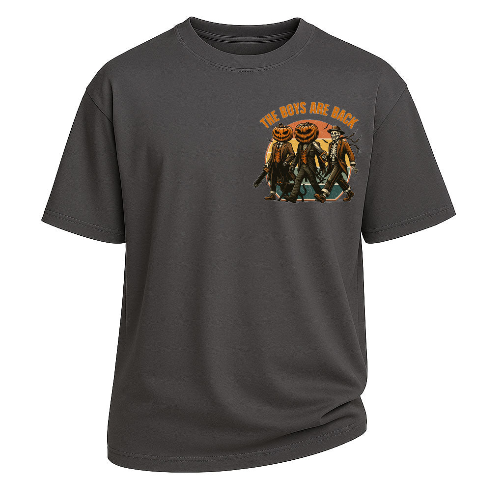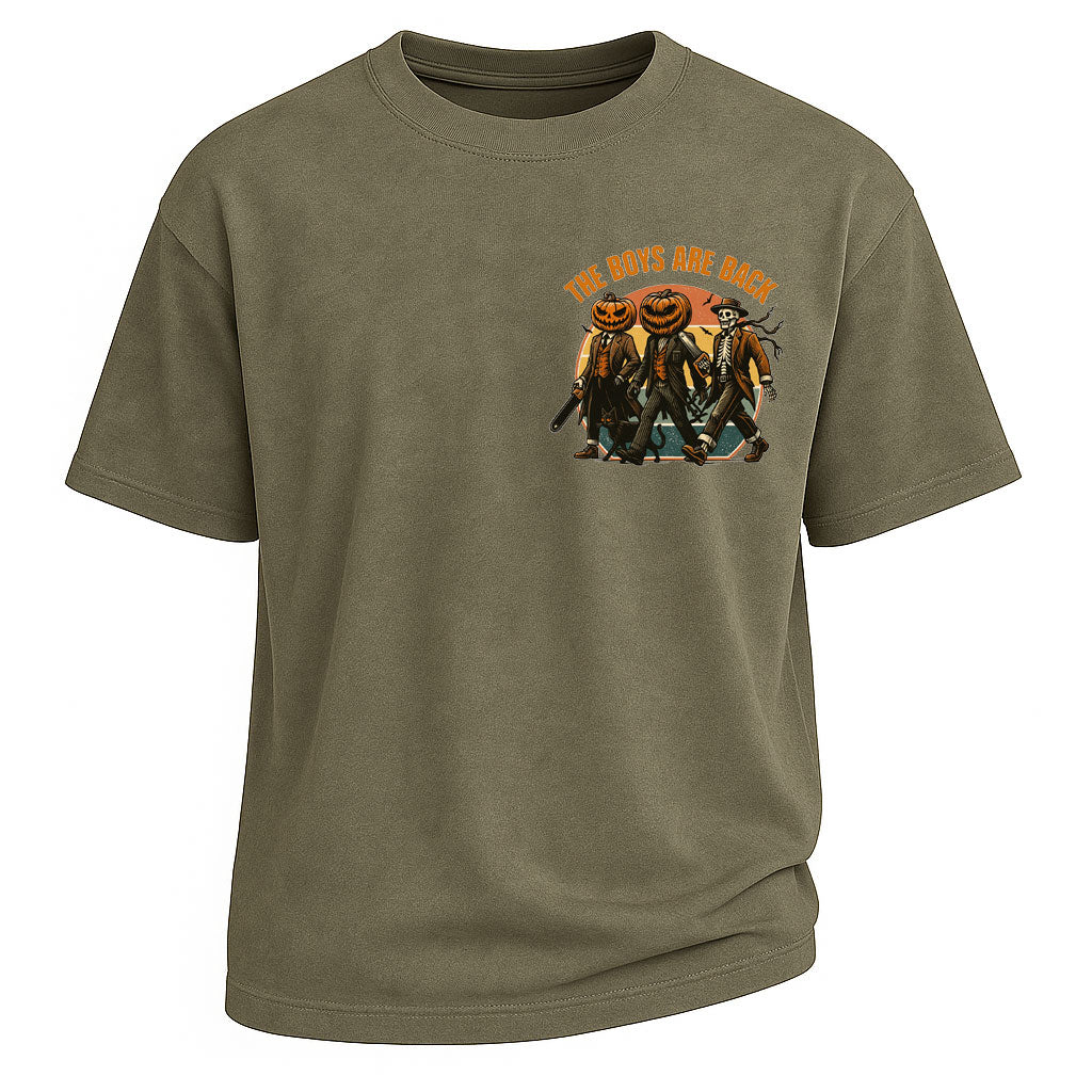 Regular price $26.99 USDBring back the spooky crew in LouMark’s "The Boys Are Back" oversized tee. Crafted from 260G heavyweight 100% cotton, this oversized T-shirt delivers premium comfort and bold style. Featuring front and back prints of pumpkin-headed figures and a scarecrow with weapons, it’s the perfect Halloween-inspired shirt for fans of dark humor and seasonal vibes. Durable, breathable, and designed with an oversized silhouette for a relaxed fit.