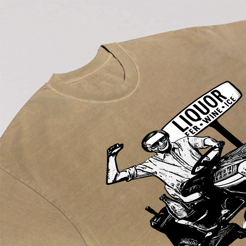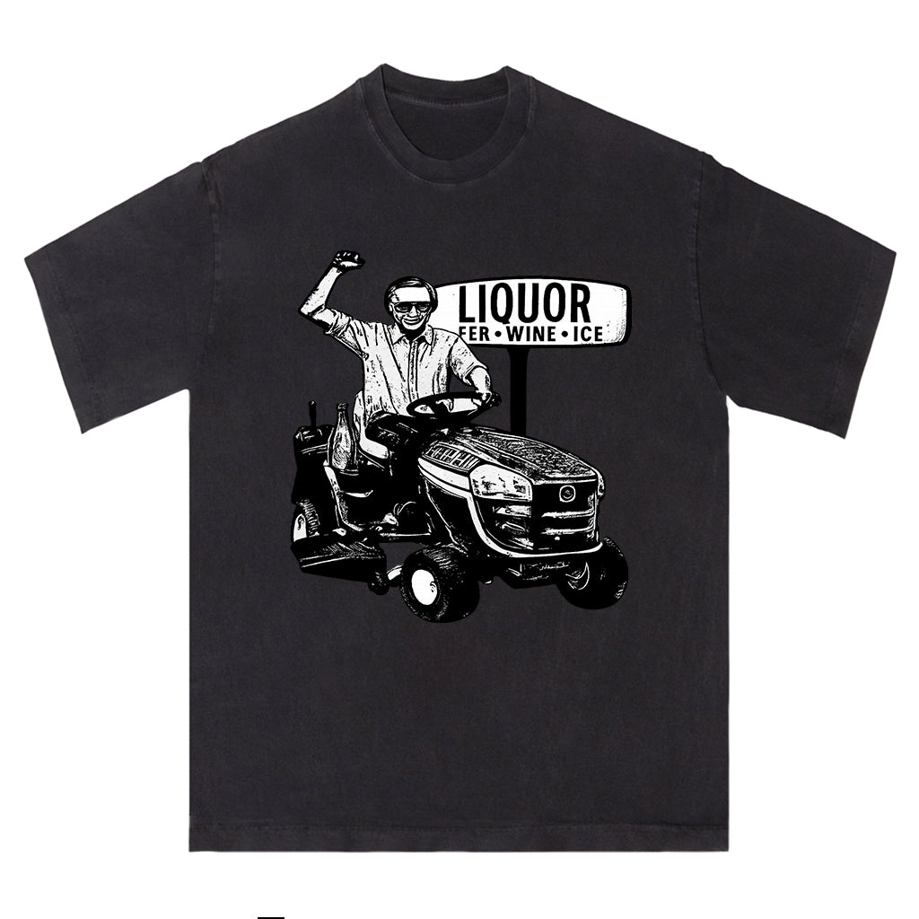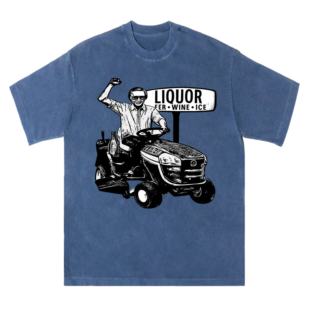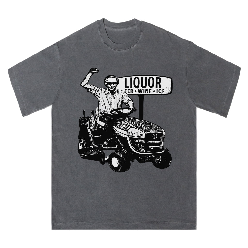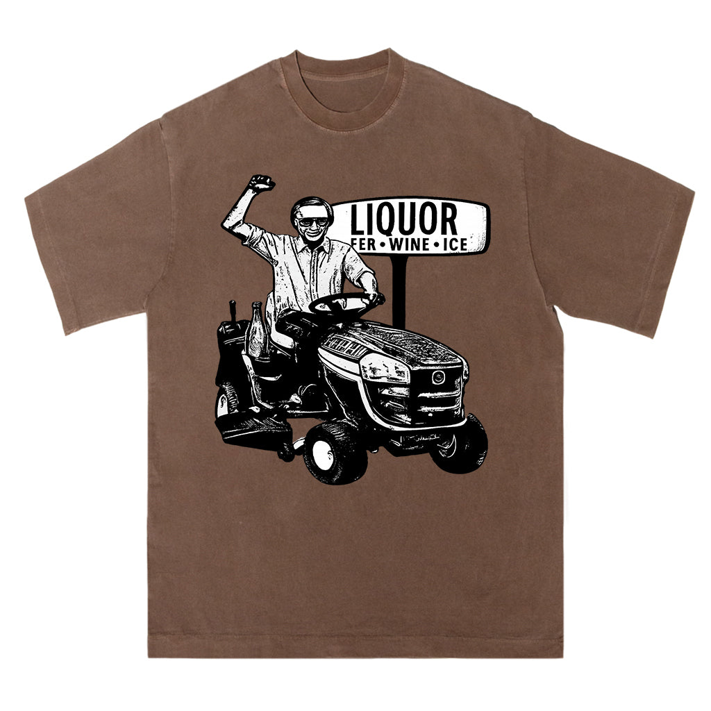 Regular price $26.99 USDCelebrate small town humor and spirit with LouMark’s Liquor Run Tee. This washed tan shirt features a vintage-style black graphic of a man driving a lawn tractor past a “LIQUOR BEER WINE ICE” sign, capturing a lighthearted, carefree vibe. Made from 100% cotton for lasting comfort and casual wear.