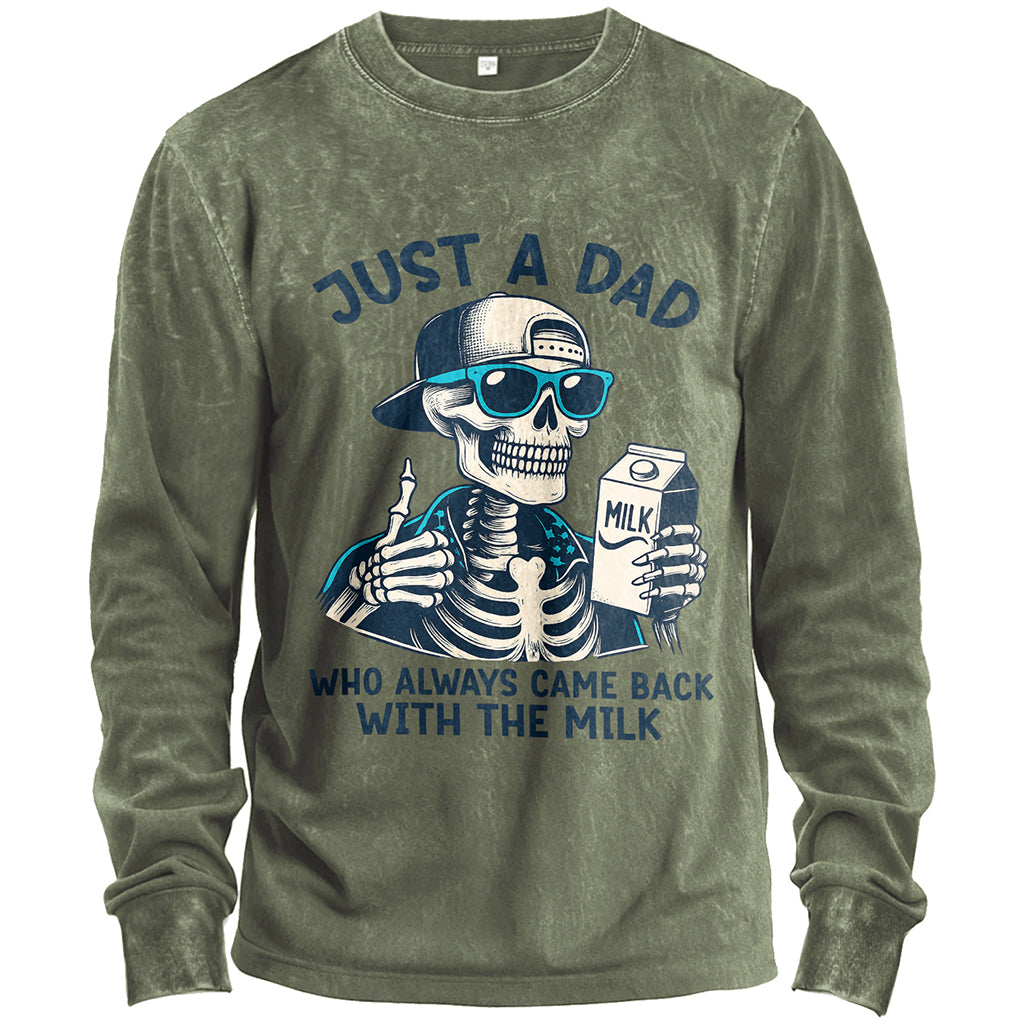 Just a Dad Skeleton Milk Cartoon Long-Sleeve T-Shirt