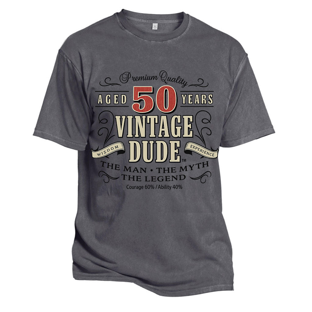 Front Text: “Aged 50 Years – Vintage Dude – The Man • The Myth • The Legend – Wisdom & Experience – Courage 60% / Ability 40%”