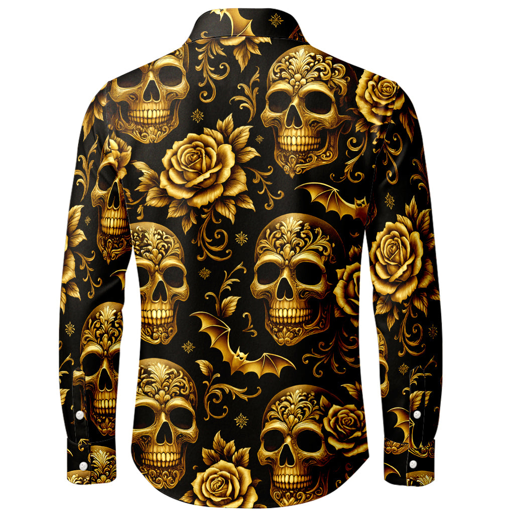 Baroque Gold Skulls & Roses 3D Print Long-Sleeve Shirt