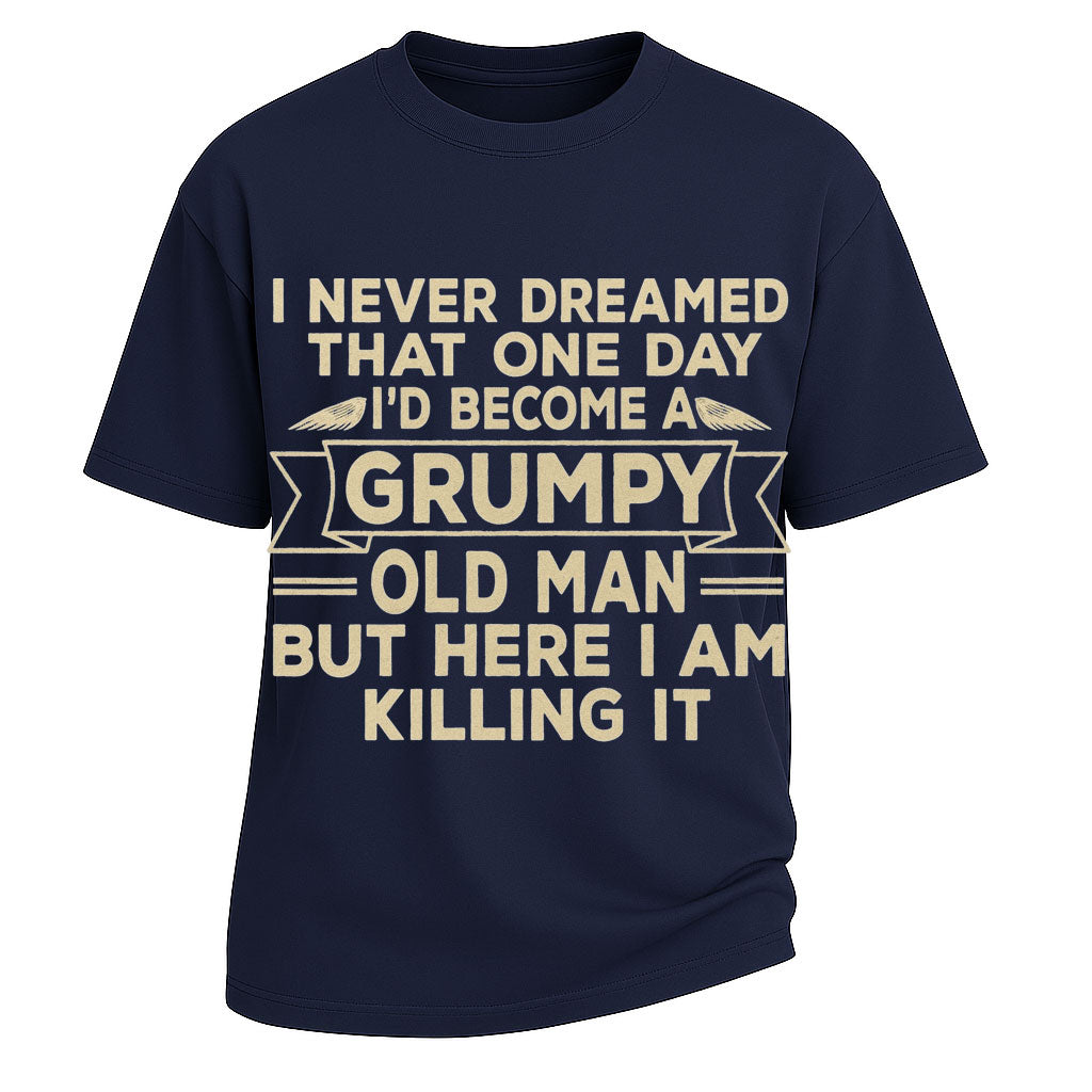 Regular price $26.99 USDStep into rugged humor with LouMark’s Grumpy Old Man Statement Tee. Built from heavy 260G 100% cotton, this oversized T-shirt ensures both comfort and lasting quality. The bold print reads “I NEVER DREAMED THAT ONE DAY I’D BECOME A GRUMPY OLD MAN BUT HERE I AM KILLING IT,” making it a perfect blend of sarcasm and confidence. A straightforward design for those who wear age like a badge of honor.