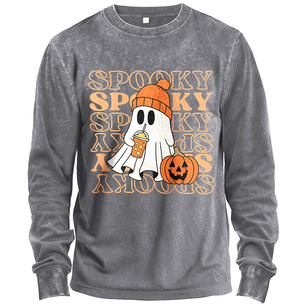 Spooky Ghost Pumpkin Halloween Long-Sleeve T-Shirt