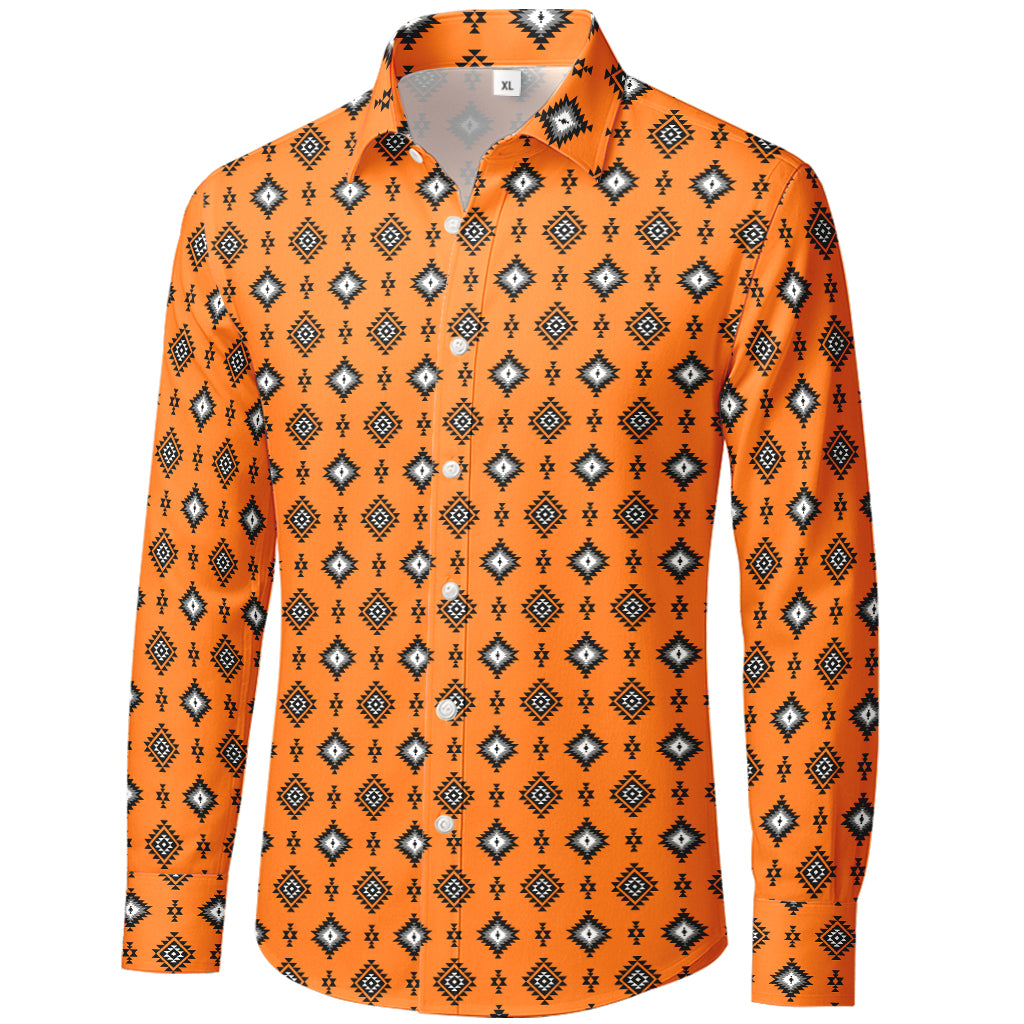 Orangefarbenes Langarmhemd mit aztekischem Rautenmuster