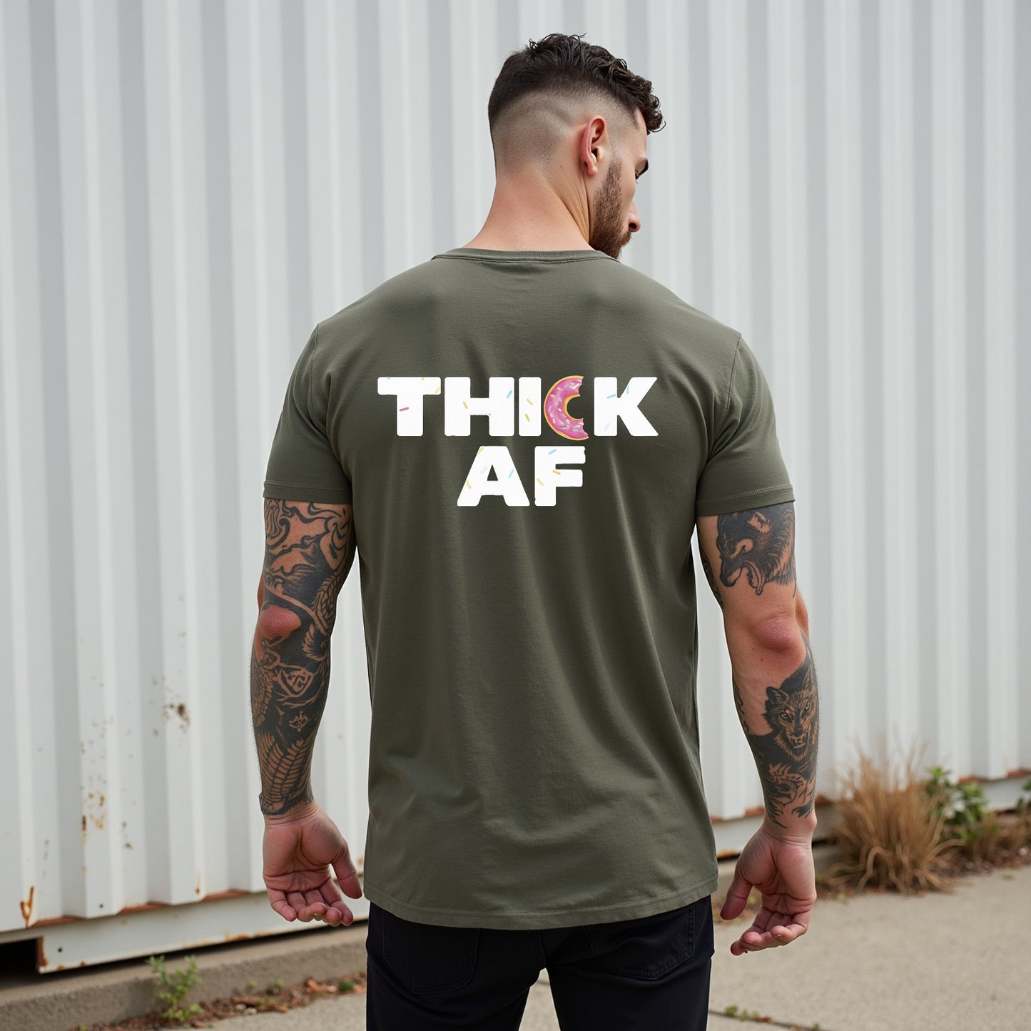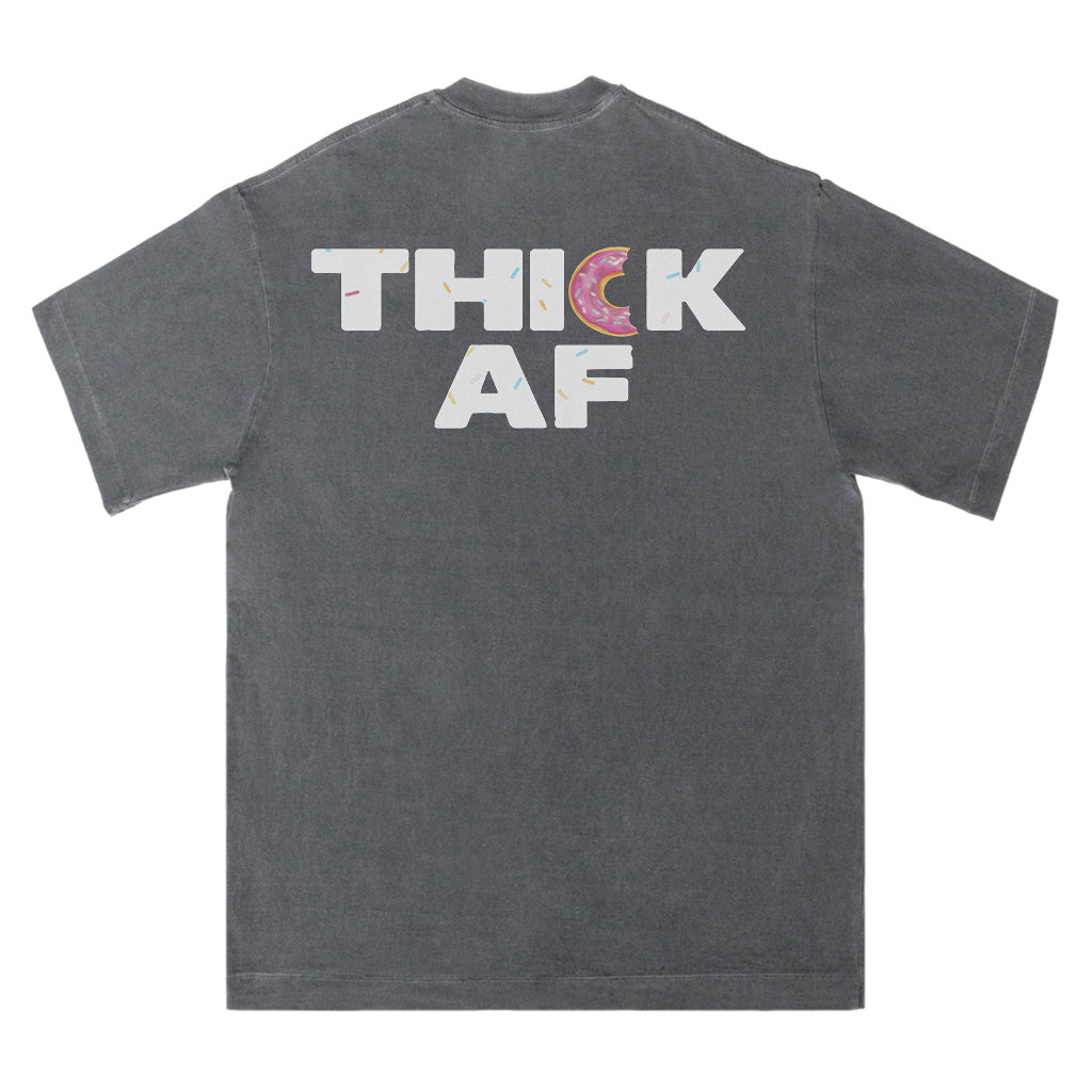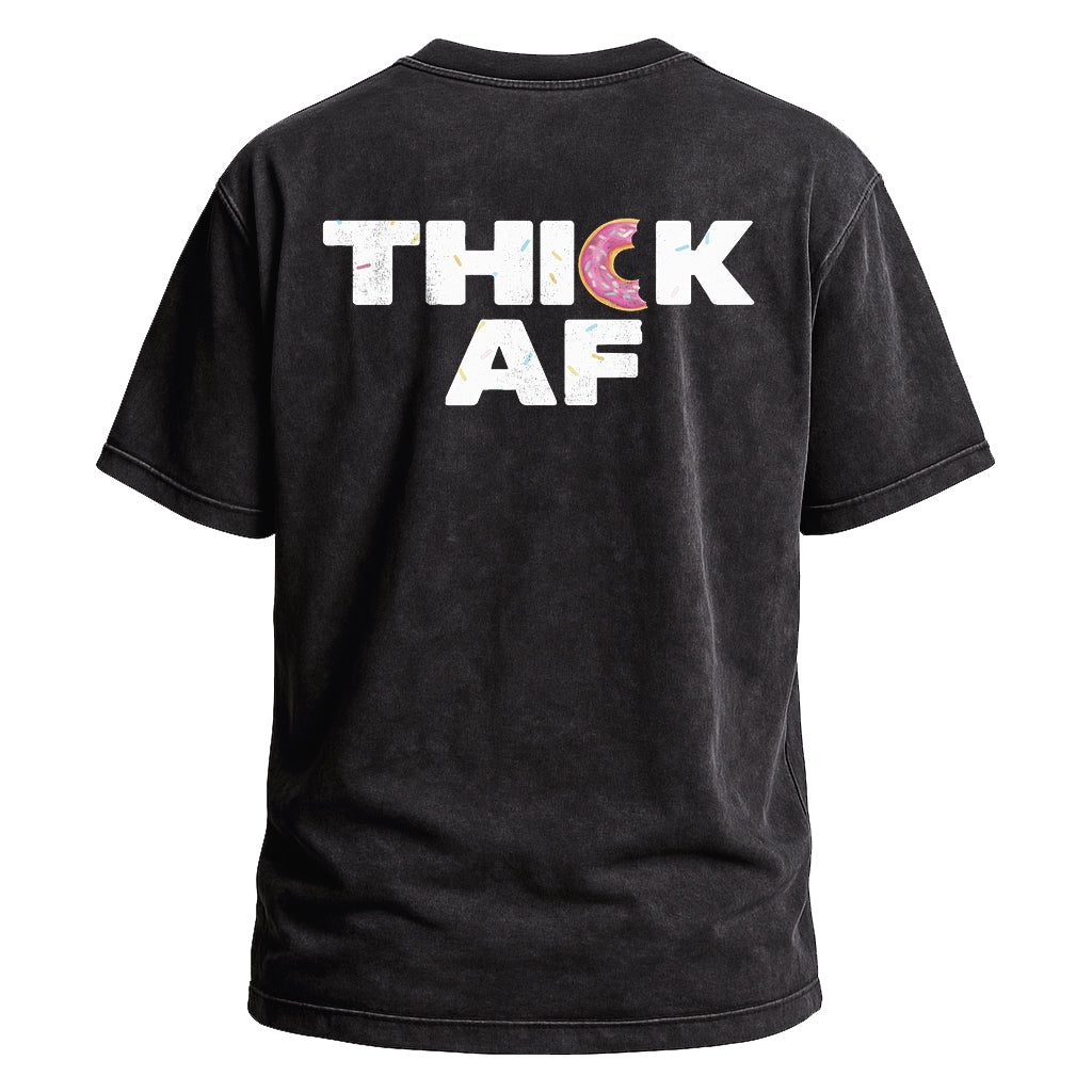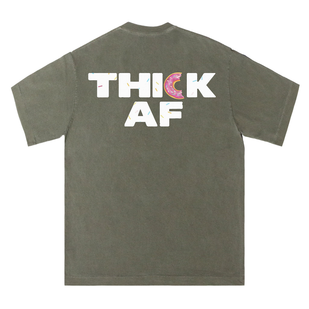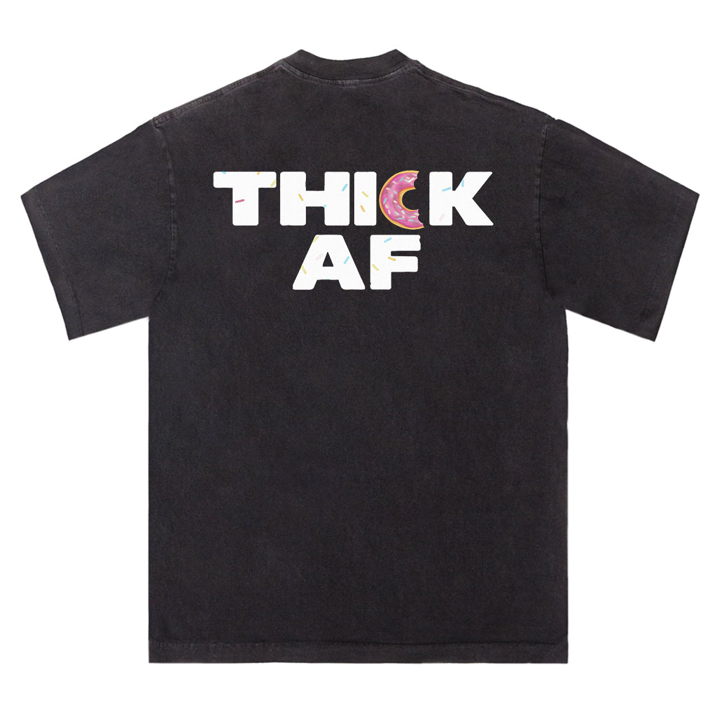 Regulärer Preis $26.99 USDSetzen Sie mit LouMarks Thick AF T-Shirt ein mutiges und verspieltes Statement. Dieses verwaschene braune Shirt ziert auf der Rückseite die große weiße Schrift mit dem Schriftzug „THICK AF“, wobei das „I“ geschickt als rosa Donut gestaltet ist. Hergestellt aus 100 % Baumwolle für bequeme Freizeitkleidung mit frechem Touch.