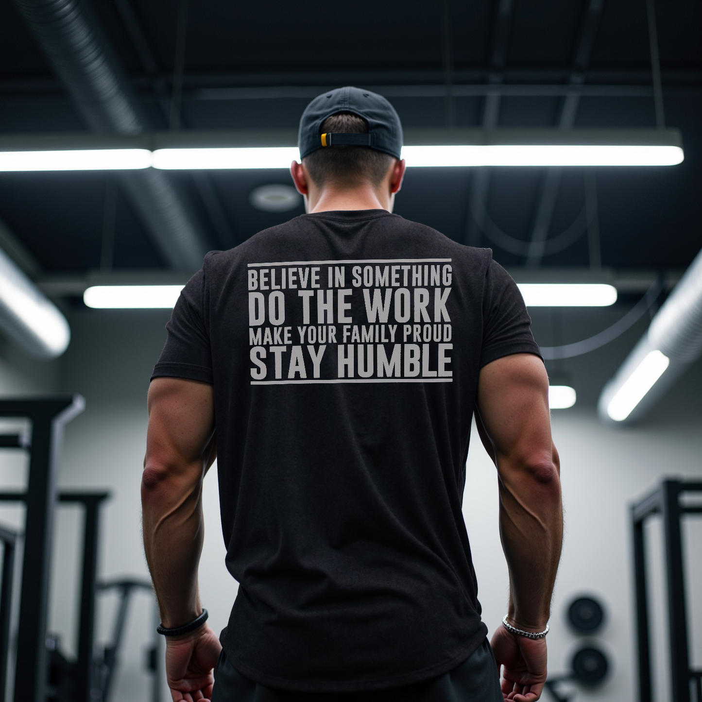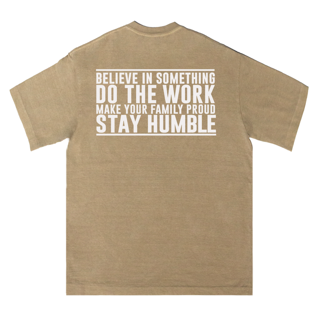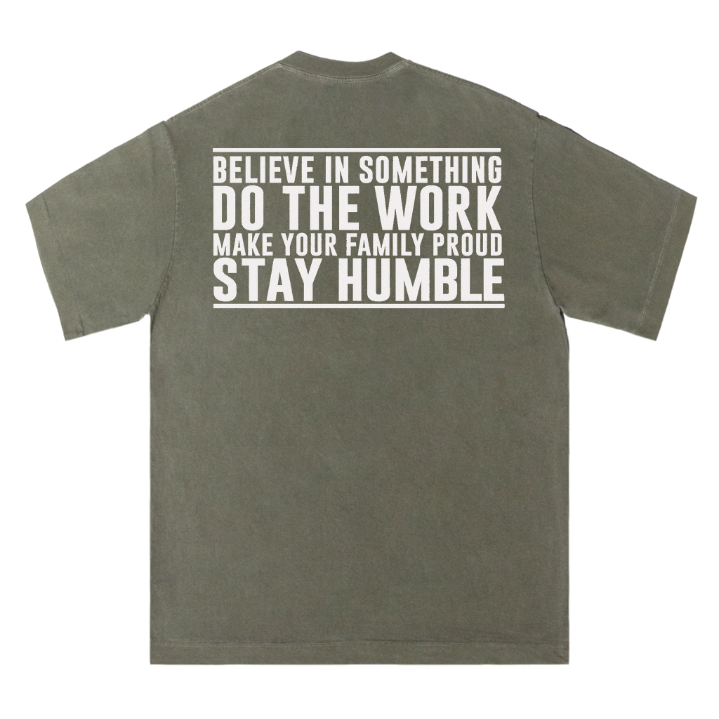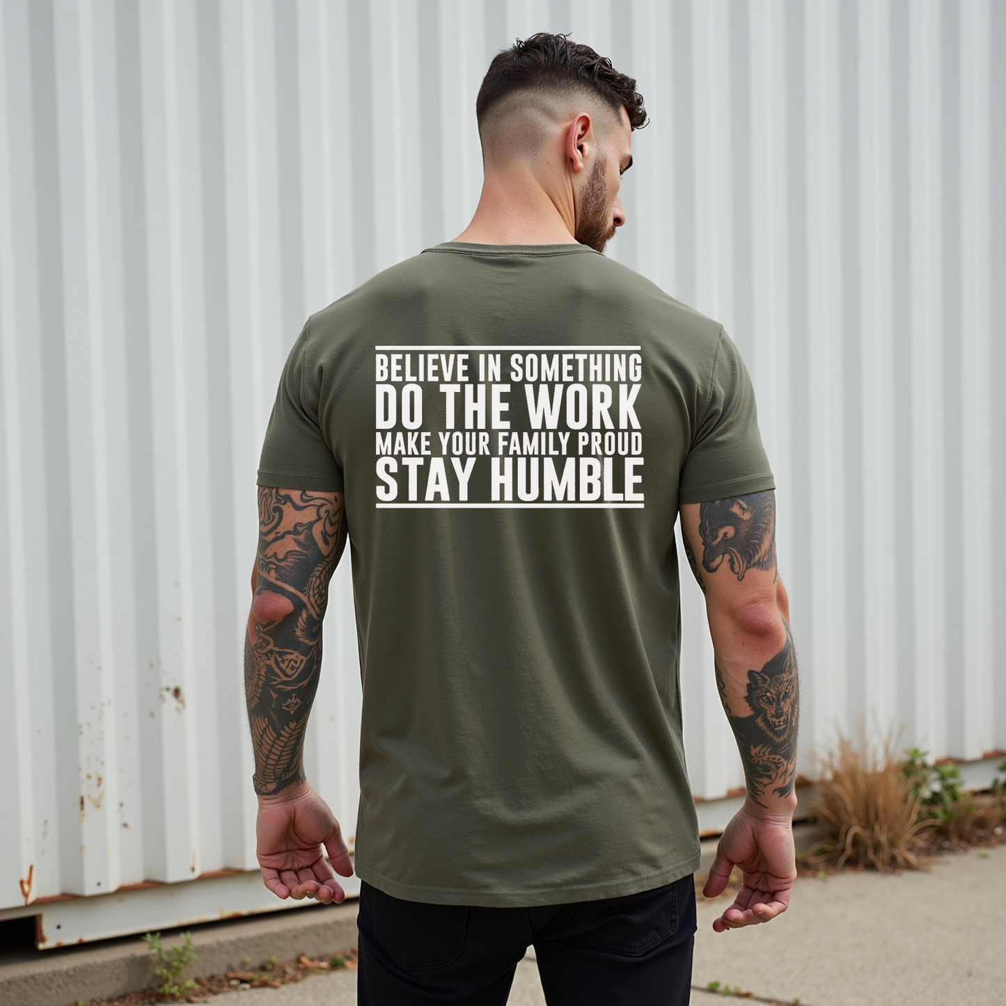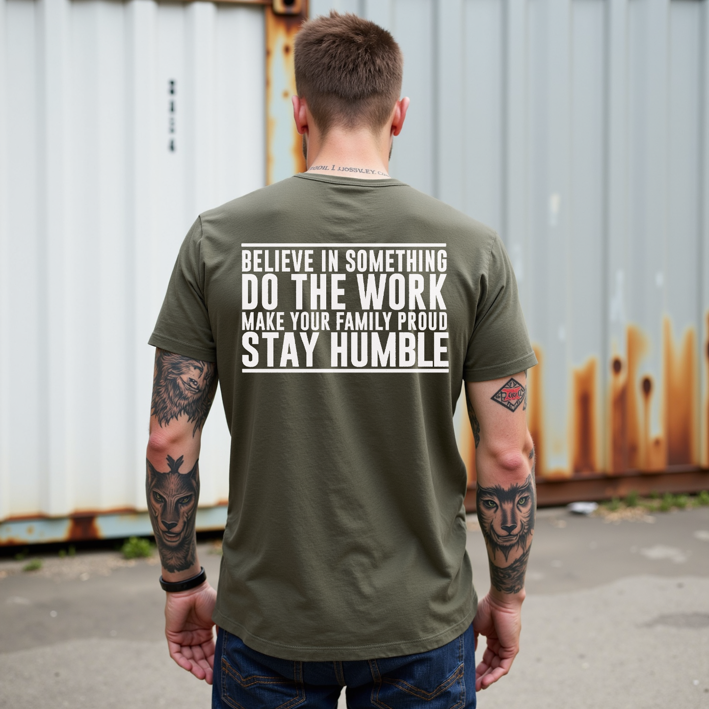 Glaube, arbeite, bleib bescheiden T-Shirt