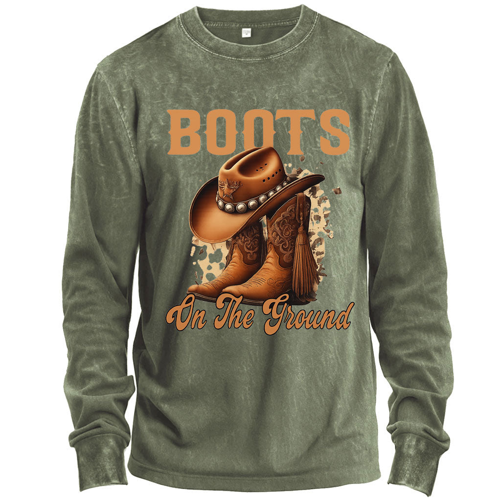 Regulärer Preis $24.99 USDZeigen Sie Ihren Stolz auf den Westen mit dem LouMark Langarmshirt „Boots And Country Soul“. Das Shirt mit Cowboyhut und -stiefeln verkörpert die herzliche Tradition des Landlebens.
